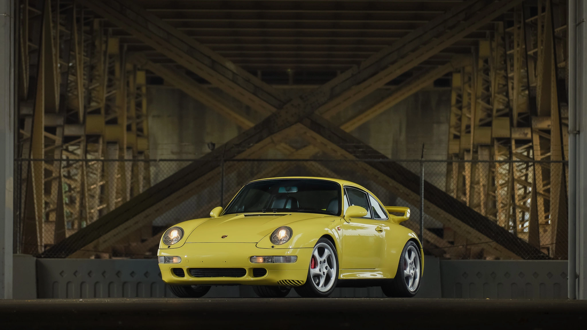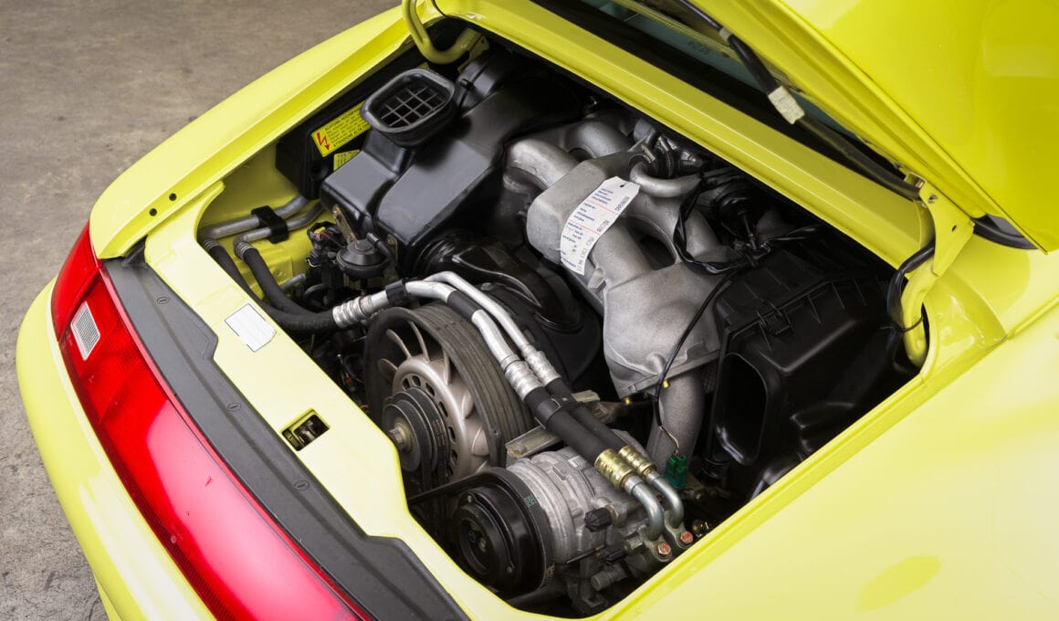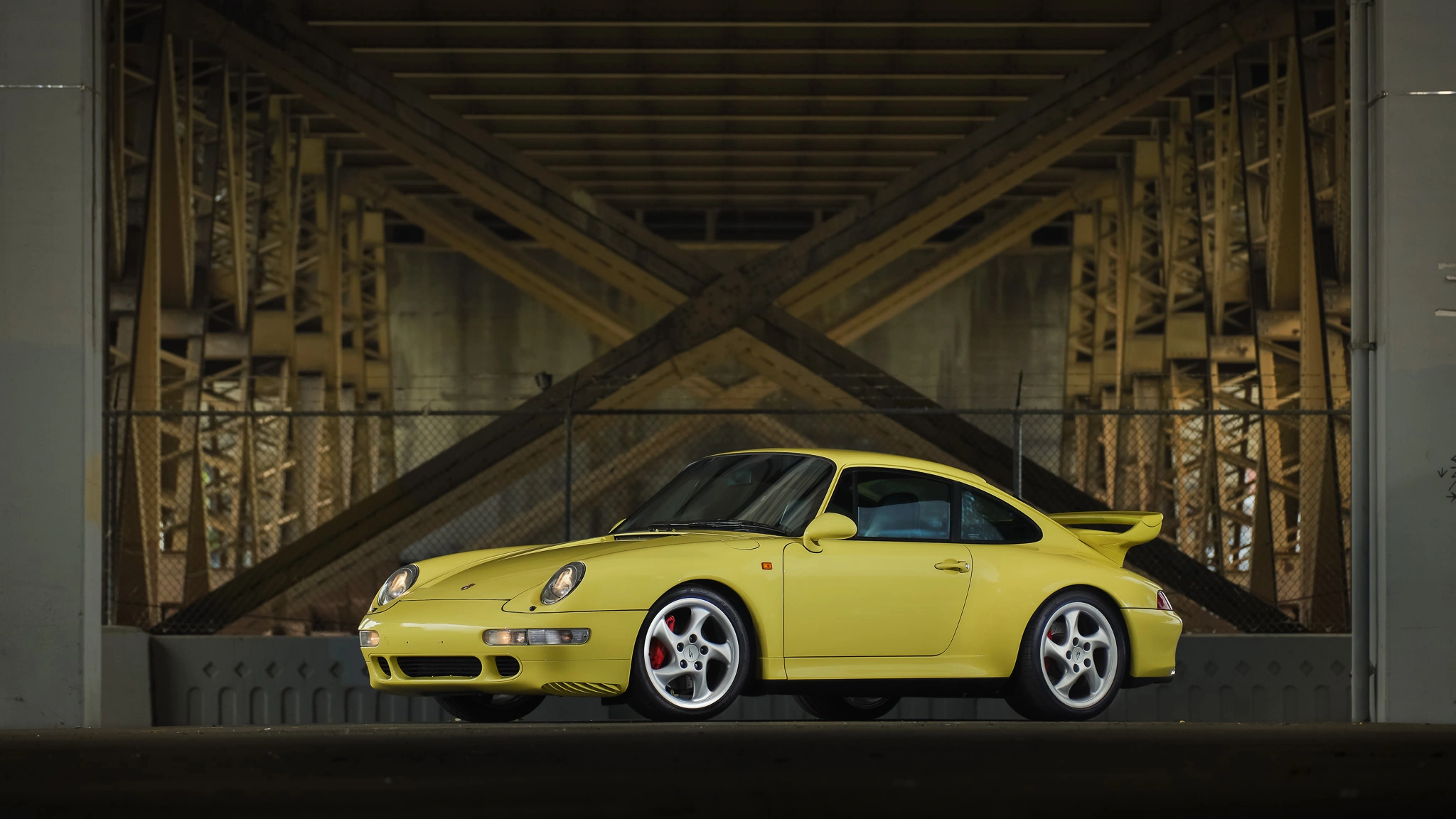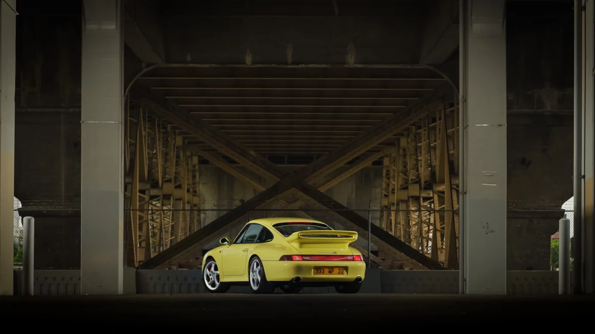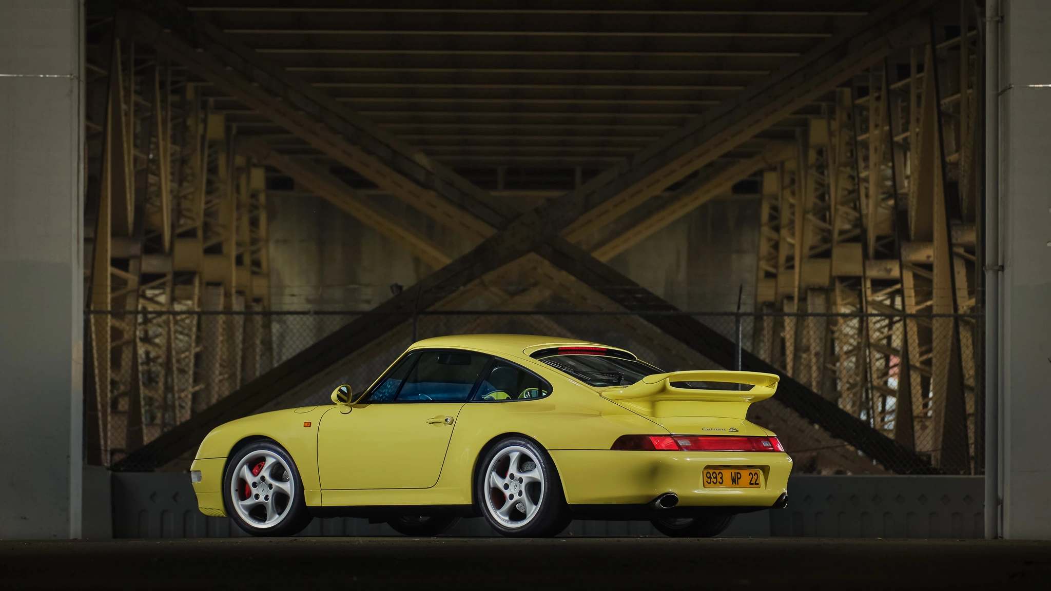J’en viens (enfin) au coupé Porsche 911 Carrera 4S de 1996 qui illustre cet article ! Achetée par je ne sais qui neuve en Italie par un italien, celui-ci l’a vendue à un Français qui l’a exporté aux USA en 2022 parce que ce modèle y jouissait d’un prix de vent extraordinaire allant jusqu’à 200.000 $/€ (même parité suite aux sanctions envers la Russie) et affichant seulement 64.000 kilomètres. Son jaune Ukrainien d’été et sa sellerie en cuir noir devaient spermettre d’atteindre un record triplant le prix d’achat, d’autant que la motorisation de la bête était flatteuse (un flat-six refroidit par air de 3,6 litres et quatre roues motrices grâce à une boîte-pont manuelle à six vitesses et à un différentiel à glissement limité). La voiture a été modifiée “à l’américaine” avec un volant et des pédales TechArt, une barre de jambe de force avant, des sièges RS, un système d’alarme et un aileron arrière, tandis que l’équipement d’usine comprenait des jantes Turbo Twist de 18 pouces, des phares au xénon, un essuie-glace de lunette arrière, une chaîne stéréo CD et la climatisation.