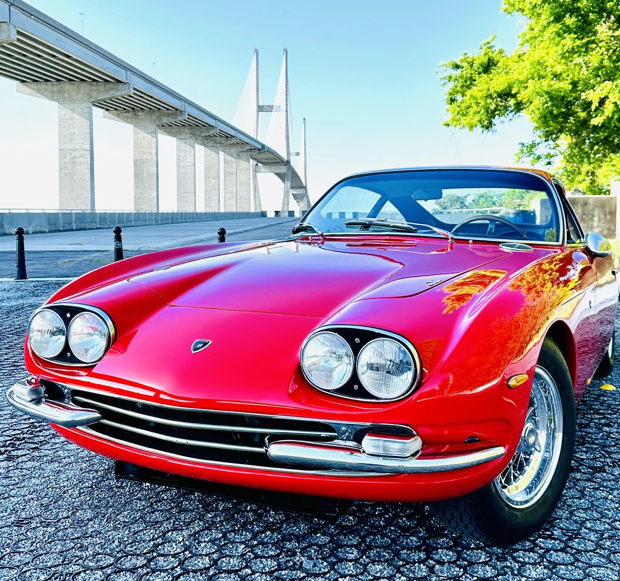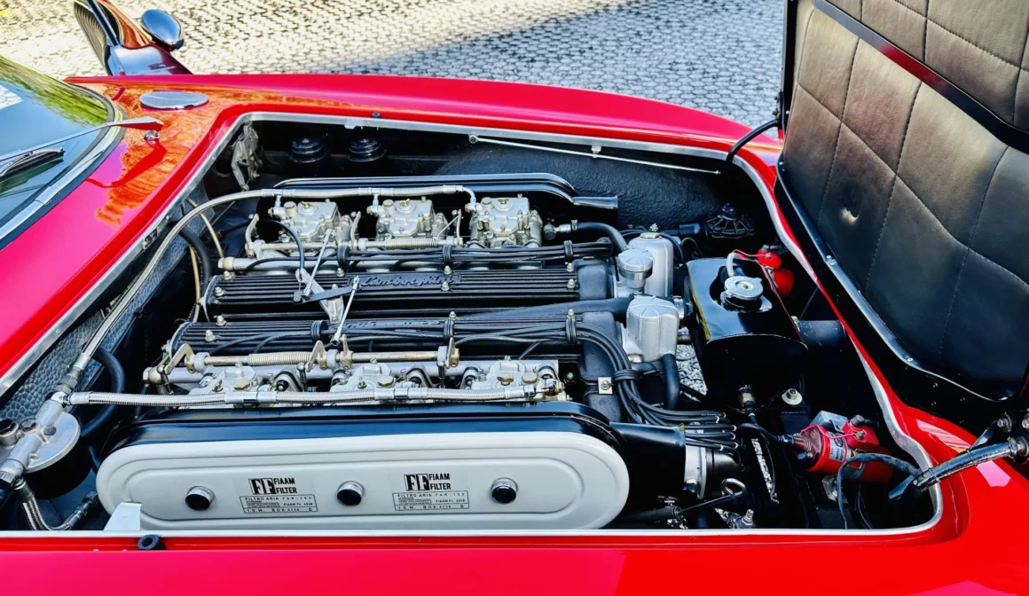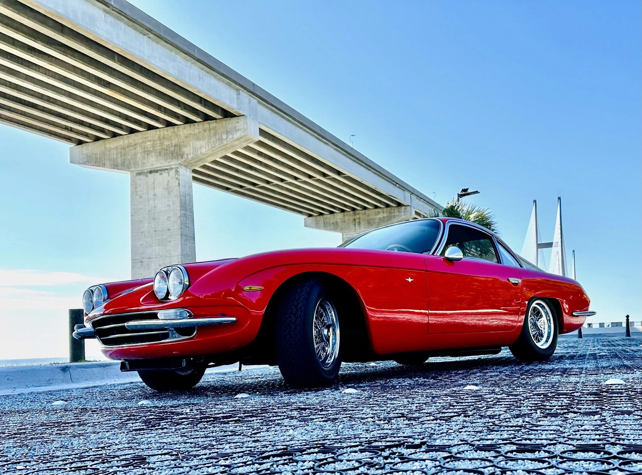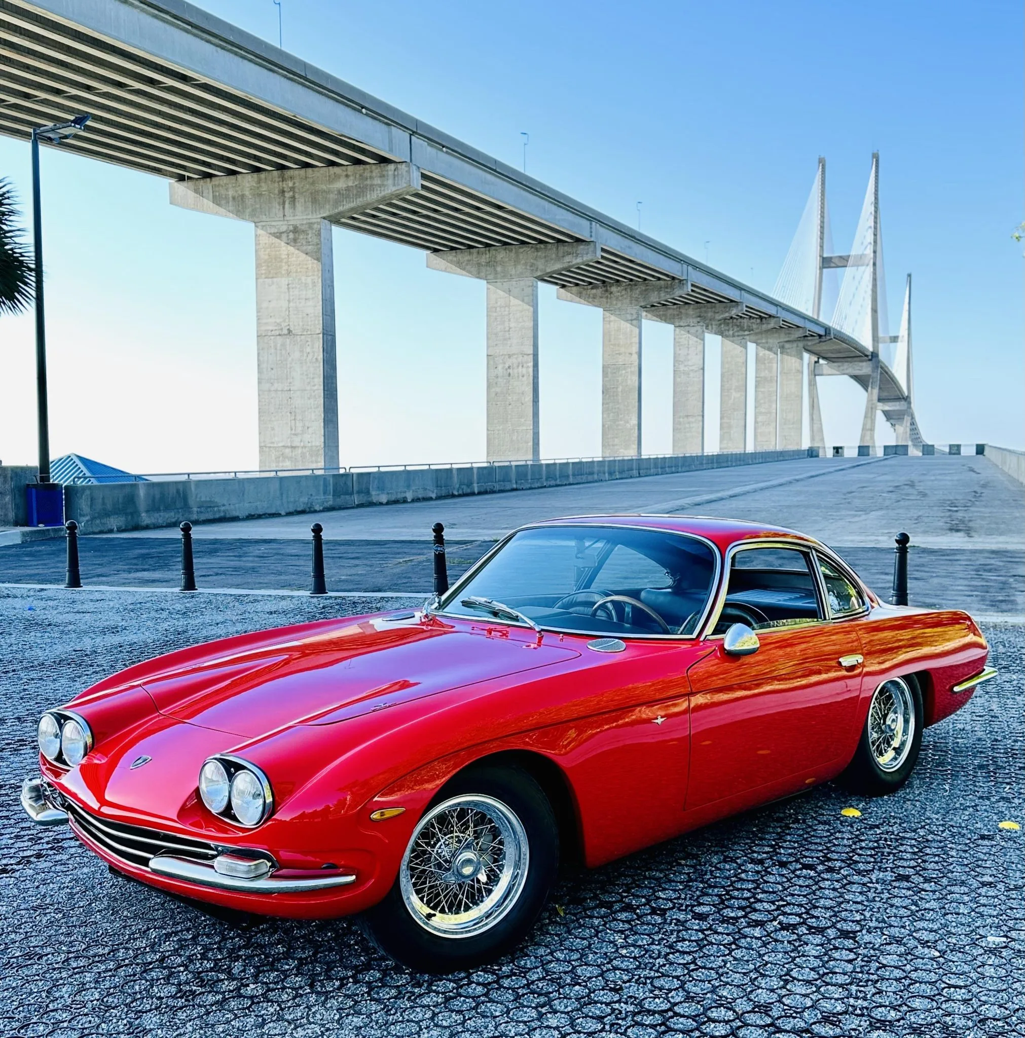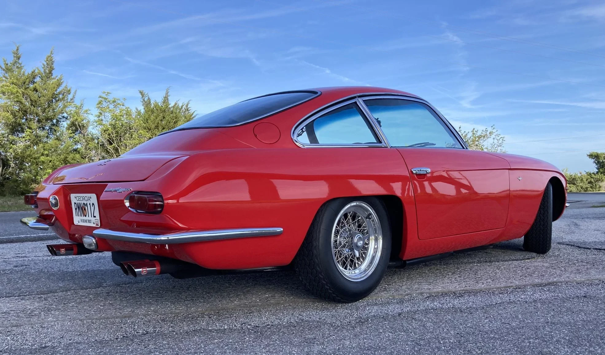 À partir de 1965, quelque 23 nouvelles voitures ont été construites avec des carrosseries identiques à la 350 GT mais propulsées par le nouveau moteur de 4 litres de Lamborghini. Le nouveau groupe motopropulseur comportait une course plus longue (augmentée de 77 à 82 mm) portant la capacité à 3929cc. La compression est passée de 9,5:1 à 10,2:1 et la puissance est passée à 320 ch à 6500 tr/min. Le couple s’est également amélioré de 35 lb-pi. à 276 lb-pi à 4500 tr/min. L’une de ces 23 voitures spéciales appartient à Brian et Julie Gladish de Californie du Sud, qui ont généreusement fourni la voiture pour cet article. Lorsque Brian a trouvé la voiture pour la première fois, le script d’identification arrière ne montrait que la cursive « Lamborghini »; la partie qui aurait dû dire « 350GT » ou « 400GT » manquait. Brian avait fait quelques recherches, cependant, et savait que les 350GT étaient en aluminium. Armé d’un aimant, il a rapidement déterminé que la carrosserie de cette voiture était en acier, la plaçant dans la catégorie 400 GT.