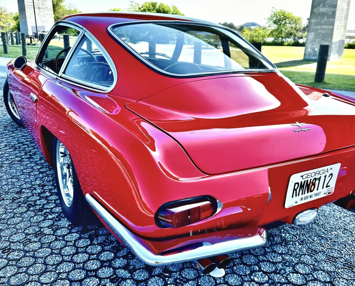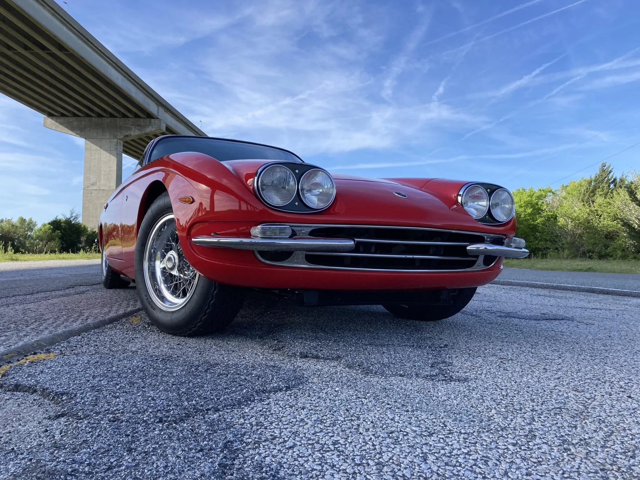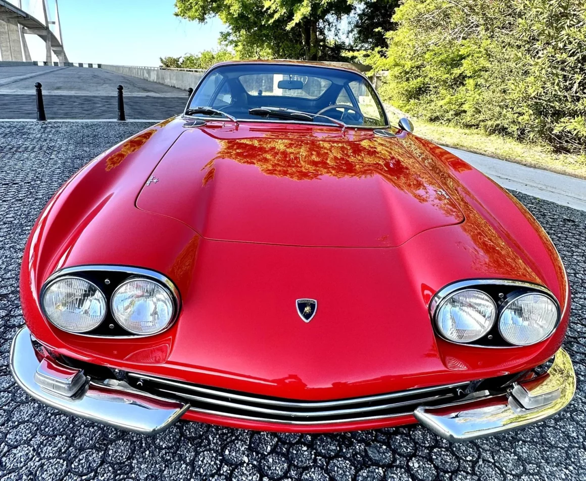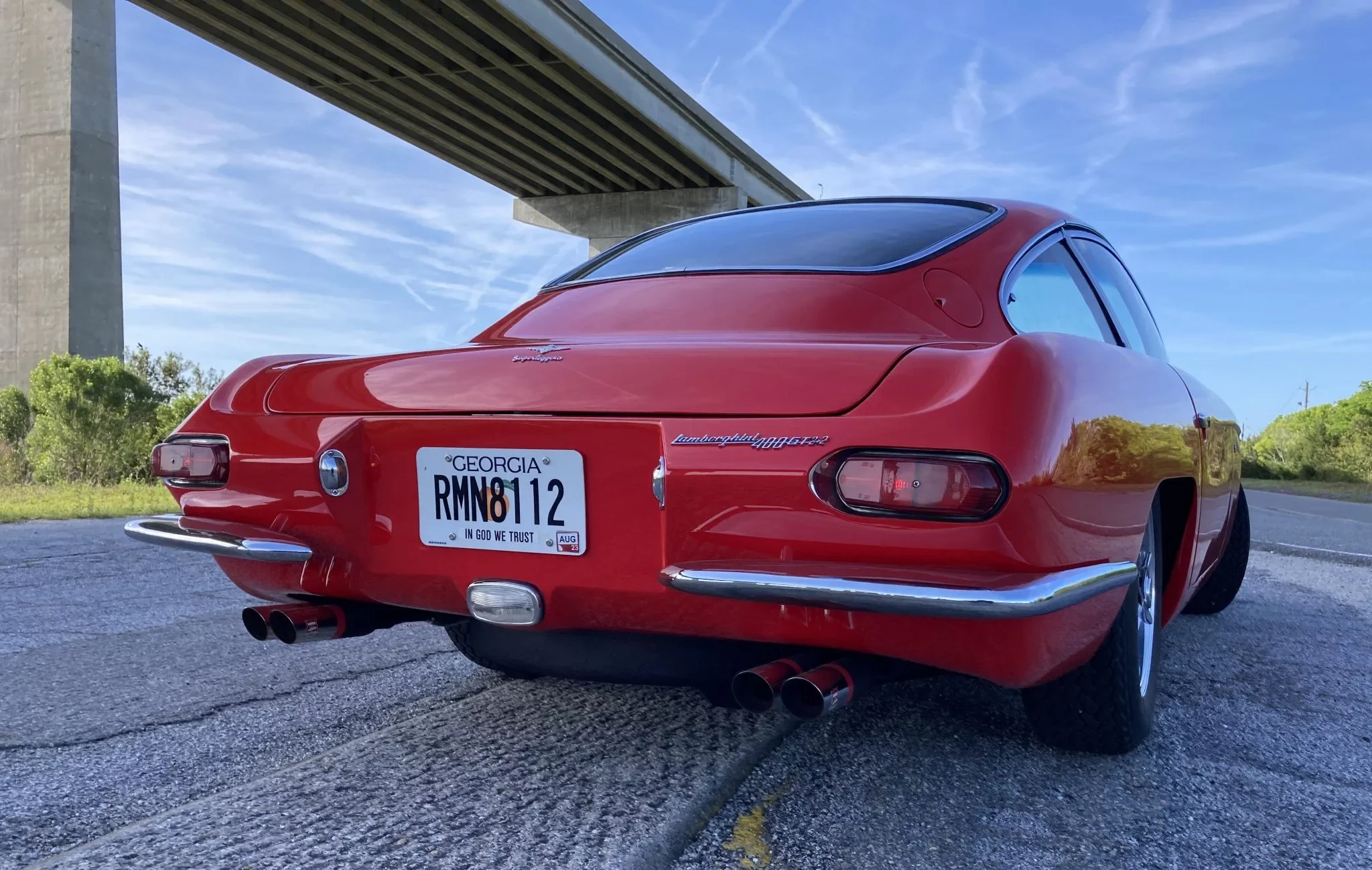 À partir de 1965, quelque 23 nouvelles voitures ont été construites avec des carrosseries identiques à la 350 GT mais propulsées par le nouveau moteur de 4 litres de Lamborghini. Le nouveau groupe motopropulseur comportait une course plus longue (augmentée de 77 à 82 mm) portant la capacité à 3929cc. La compression est passée de 9,5:1 à 10,2:1 et la puissance est passée à 320 ch à 6500 tr/min. Le couple s’est également amélioré de 35 lb-pi. à 276 lb-pi à 4500 tr/min. L’une de ces 23 voitures spéciales appartient à Brian et Julie Gladish de Californie du Sud, qui ont généreusement fourni la voiture pour cet article. Lorsque Brian a trouvé la voiture pour la première fois, le script d’identification arrière ne montrait que la cursive « Lamborghini »; la partie qui aurait dû dire « 350GT » ou « 400GT » manquait. Brian avait fait quelques recherches, cependant, et savait que les 350GT étaient en aluminium. Armé d’un aimant, il a rapidement déterminé que la carrosserie de cette voiture était en acier, la plaçant dans la catégorie 400 GT.