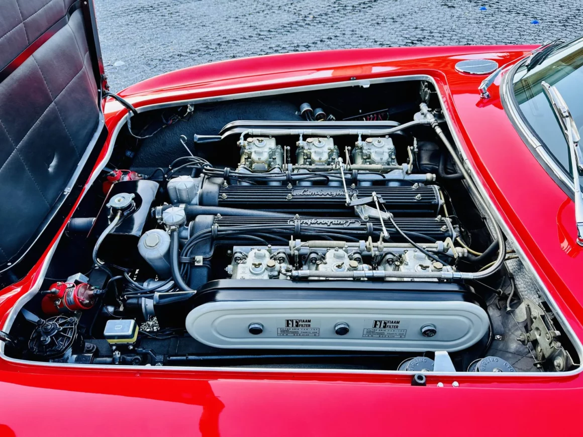 Franco Scaglione auteur des AT Alfa Romeo à l’époque où il était chef du design Bertone a été licencié. Giotto Bizzarrini est entré en litige avec Lamborghini, seul Gian Paolo Dallara, âgé de 27 ans, a été autorisé à rester. Mais ce que Ferruccio Lamborghini a imposé au jeune ingénieur qui avait étudié l’ingénierie aéronautique à Milan, était presque inhumain. Non seulement il a dû apprendre les bonnes manières au moteur Bizzarrini, mais il a également dû développer la GTV pour en faire une voiture décente. Et en même temps superviser la construction de la nouvelle usine à Sant’Agata Bolognese. Et tout cela en un rien de temps, parce que Ferruccio Lamborghini était un homme impatient, et après la disgrâce vécue avec la Lamborghini GTV, il ne pouvait plus se permettre “la nudité”.… Bien que l’ingénieur aéronautique Dallara ait peu d’expérience avec les moteurs, il a résolu le problème du V12, brièvement, sans douleur et avec brio. D’abord les six carburateurs doubles Weber de 36 millimètres de la 350 GTV ont été remplacés par des variantes plus civiles (Weber’s 40 DCOE).
