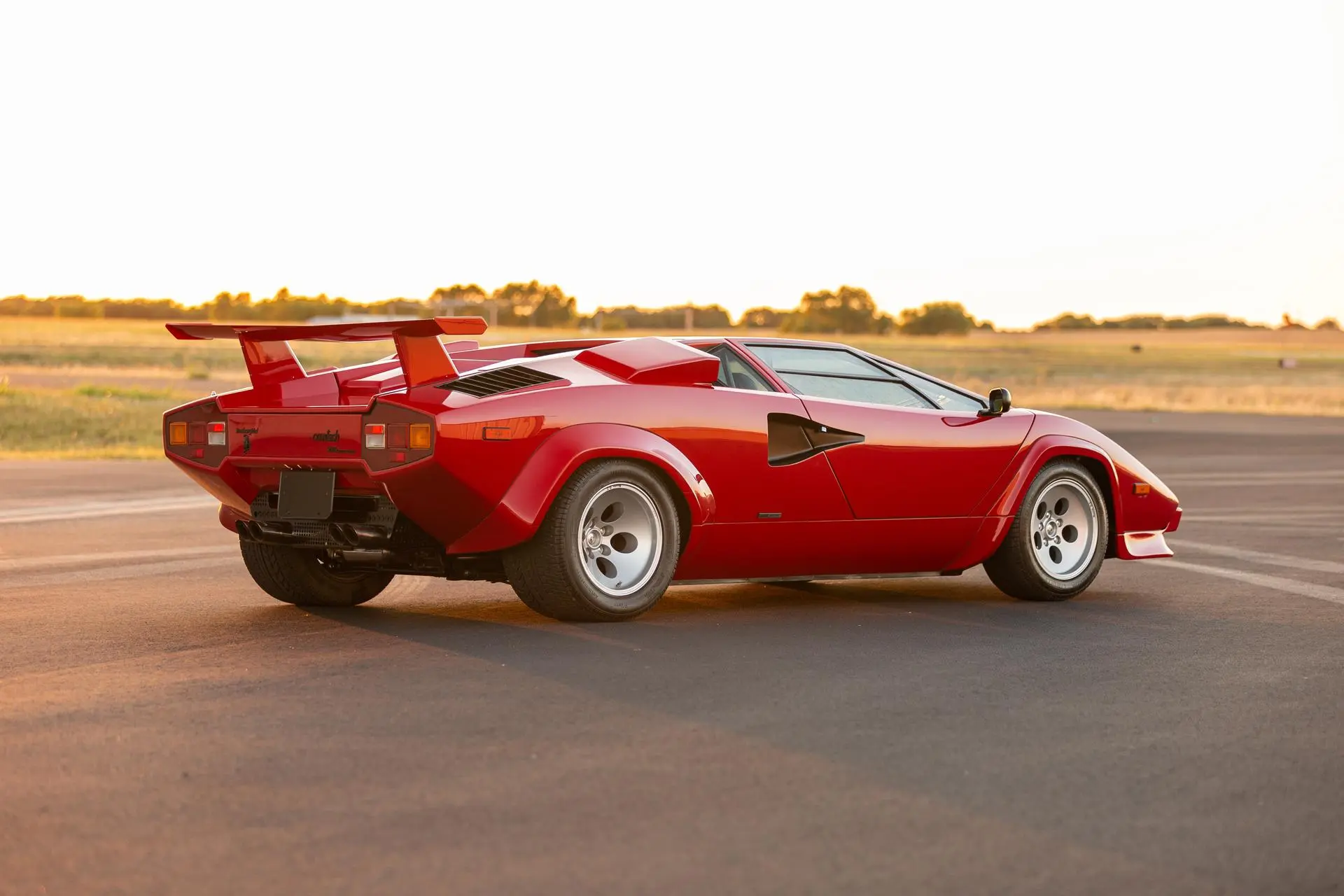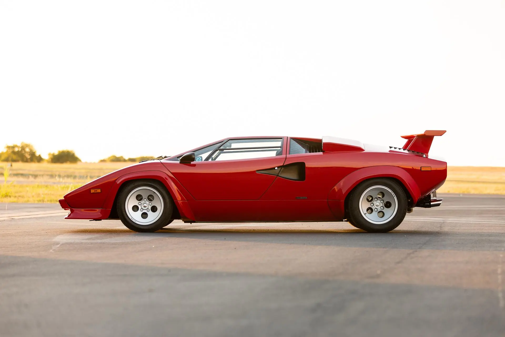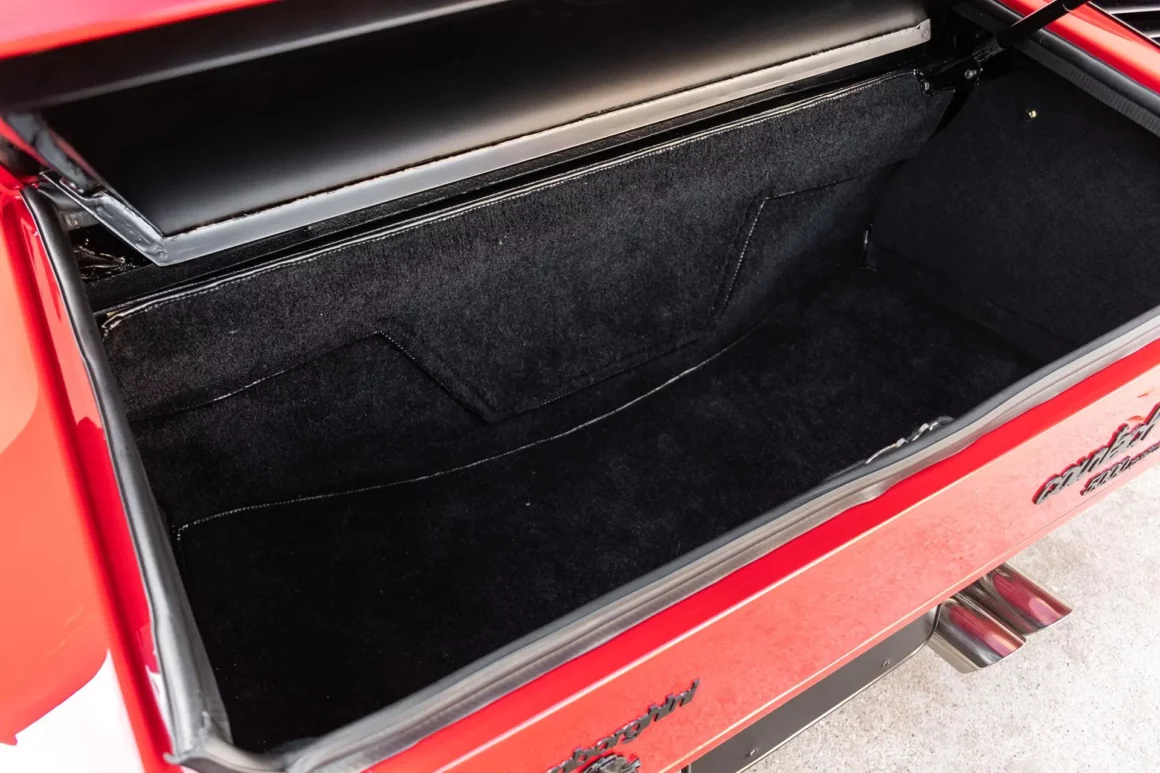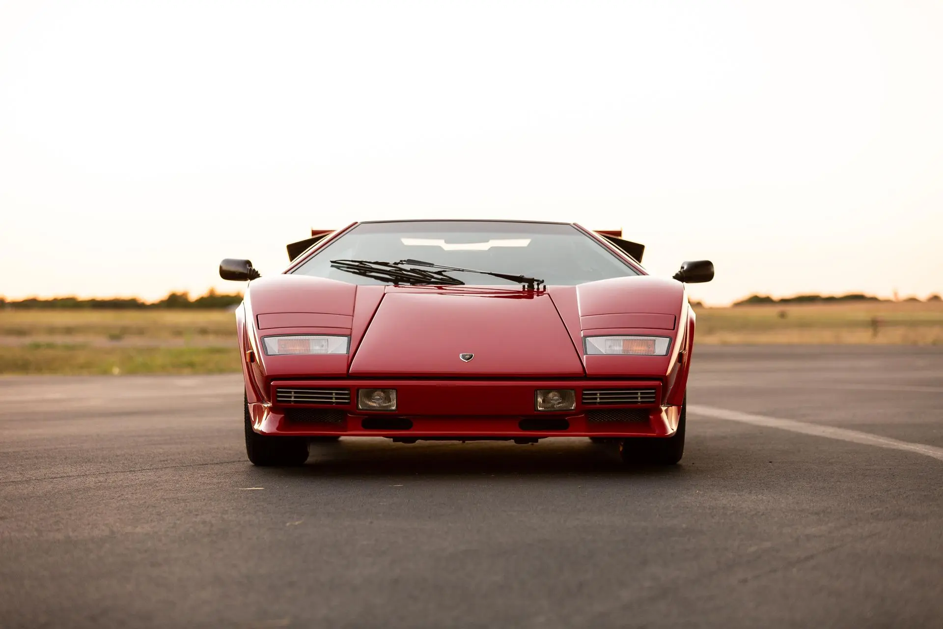 Rouge Siviglia (immaculé) avec une sellerie en cuir noir (immaculé), équipée de son V12 original (immaculé) Quad-Cam de 5L2 injection (conçu par Giotto Bizzarrini) disposant d’un angle de banc de cylindres de 60°, de quatre soupapes par cylindre et d’une injection de carburant Bosch K-Jetronic, cette Countach a été évalué en usine à 414 chevaux. Il est jumelé à une transmission manuelle cinq vitesses. L’ensemble affiche seulement 19.000 kms.