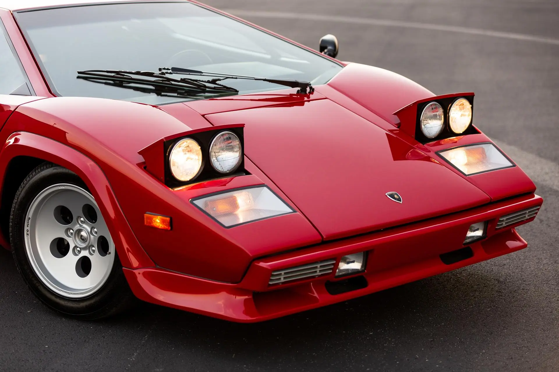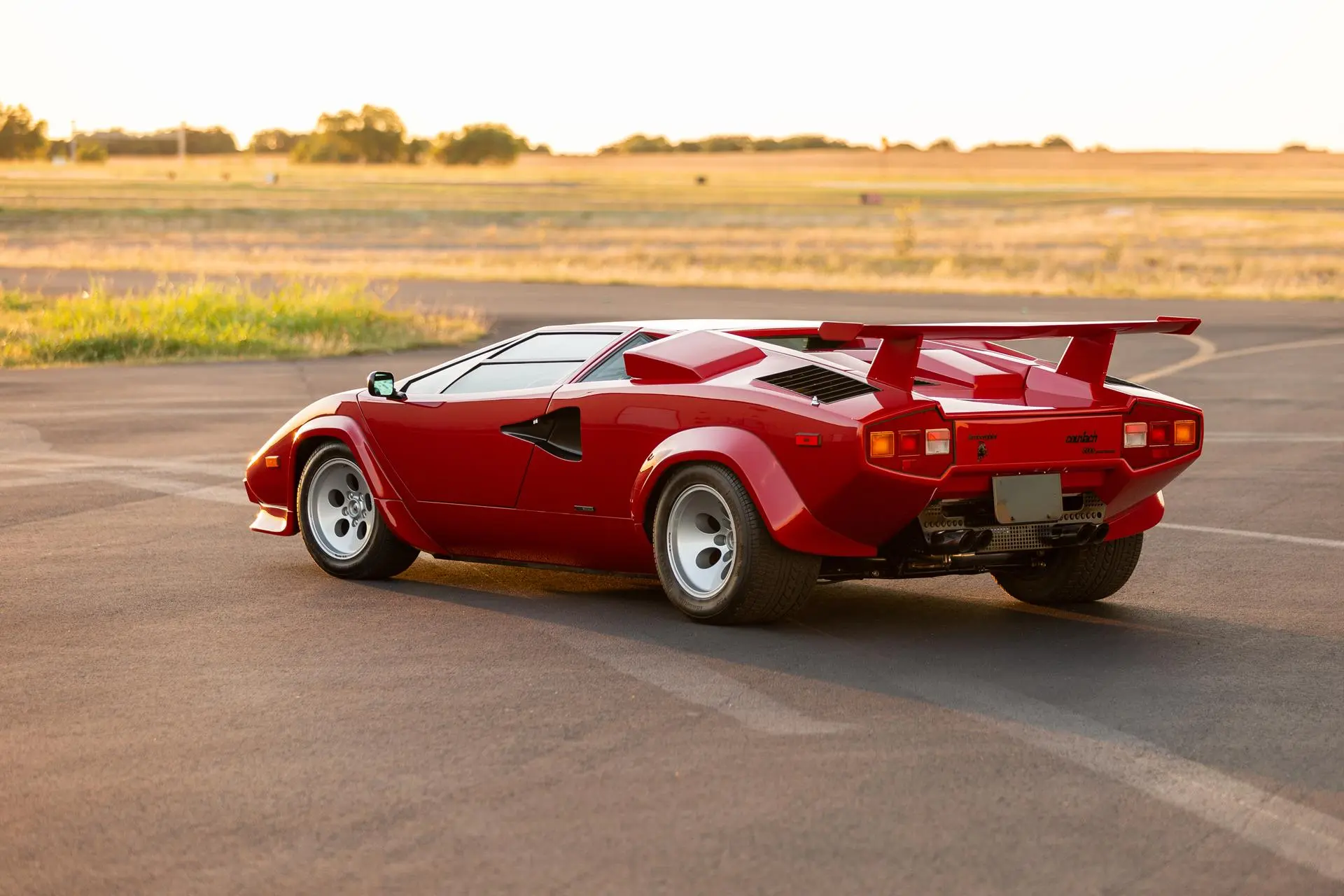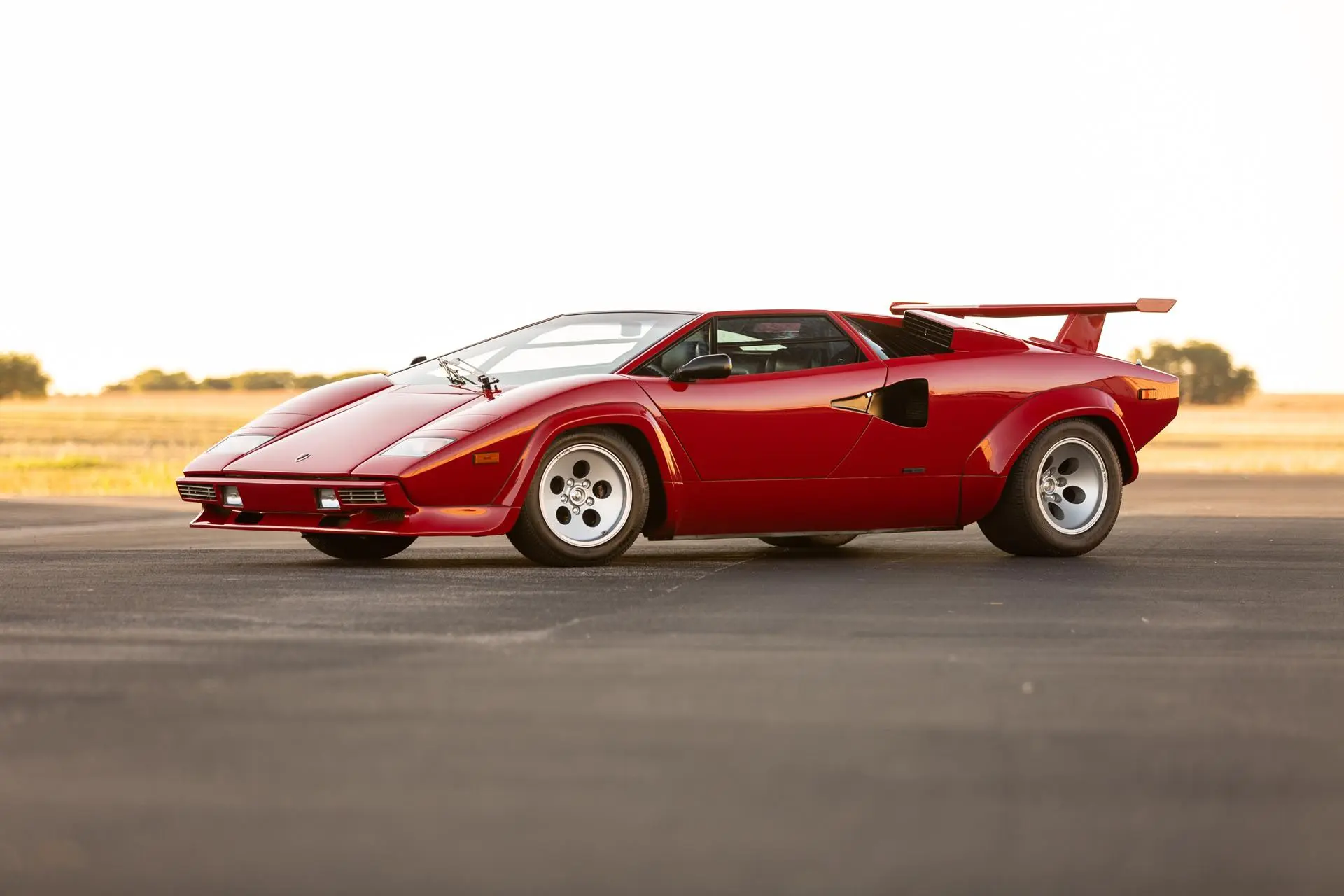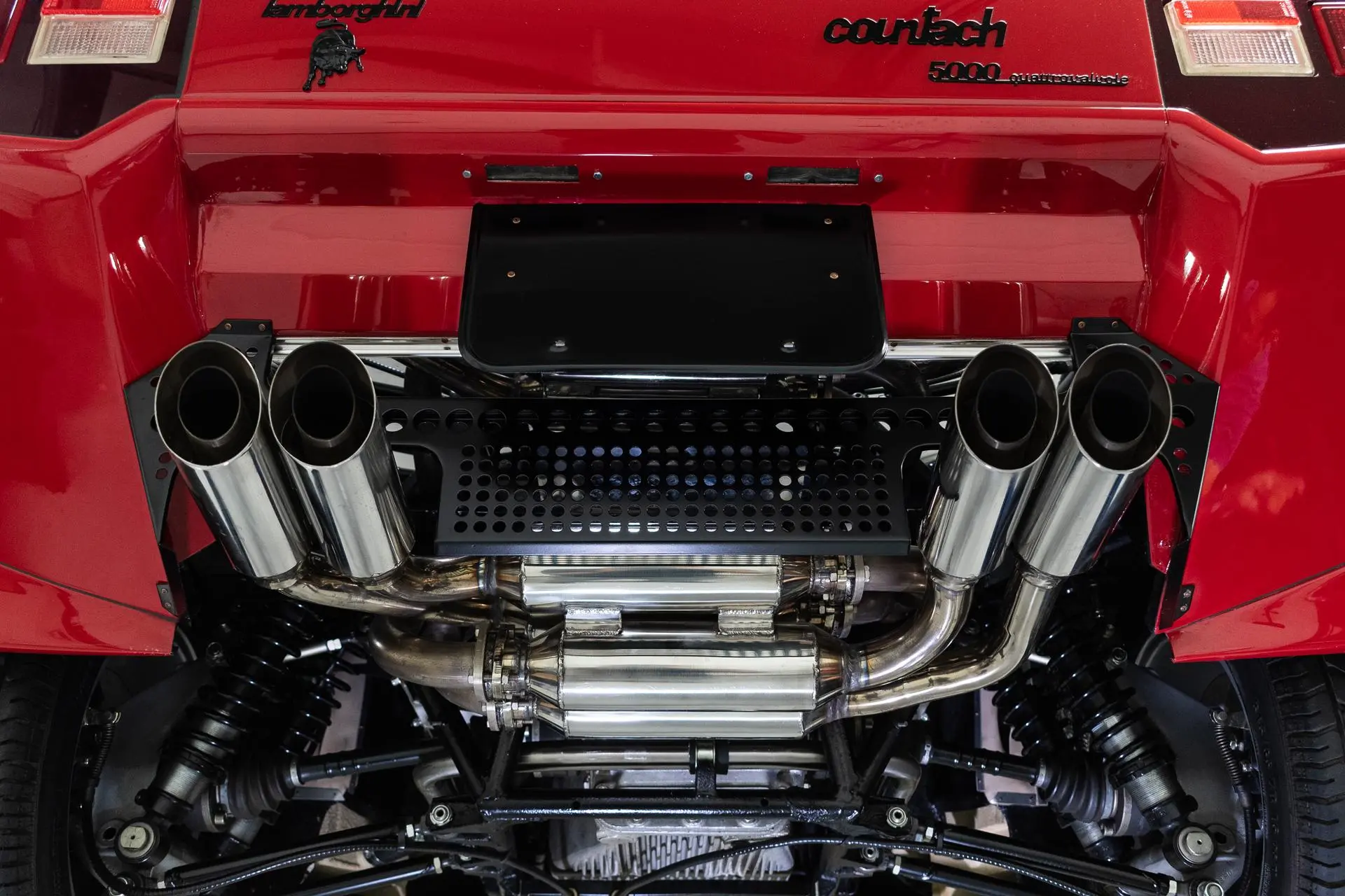 Rouge Siviglia (immaculé) avec une sellerie en cuir noir (immaculé), équipée de son V12 original (immaculé) Quad-Cam de 5L2 injection (conçu par Giotto Bizzarrini) disposant d’un angle de banc de cylindres de 60°, de quatre soupapes par cylindre et d’une injection de carburant Bosch K-Jetronic, cette Countach a été évalué en usine à 414 chevaux. Il est jumelé à une transmission manuelle cinq vitesses. L’ensemble affiche seulement 19.000 kms.