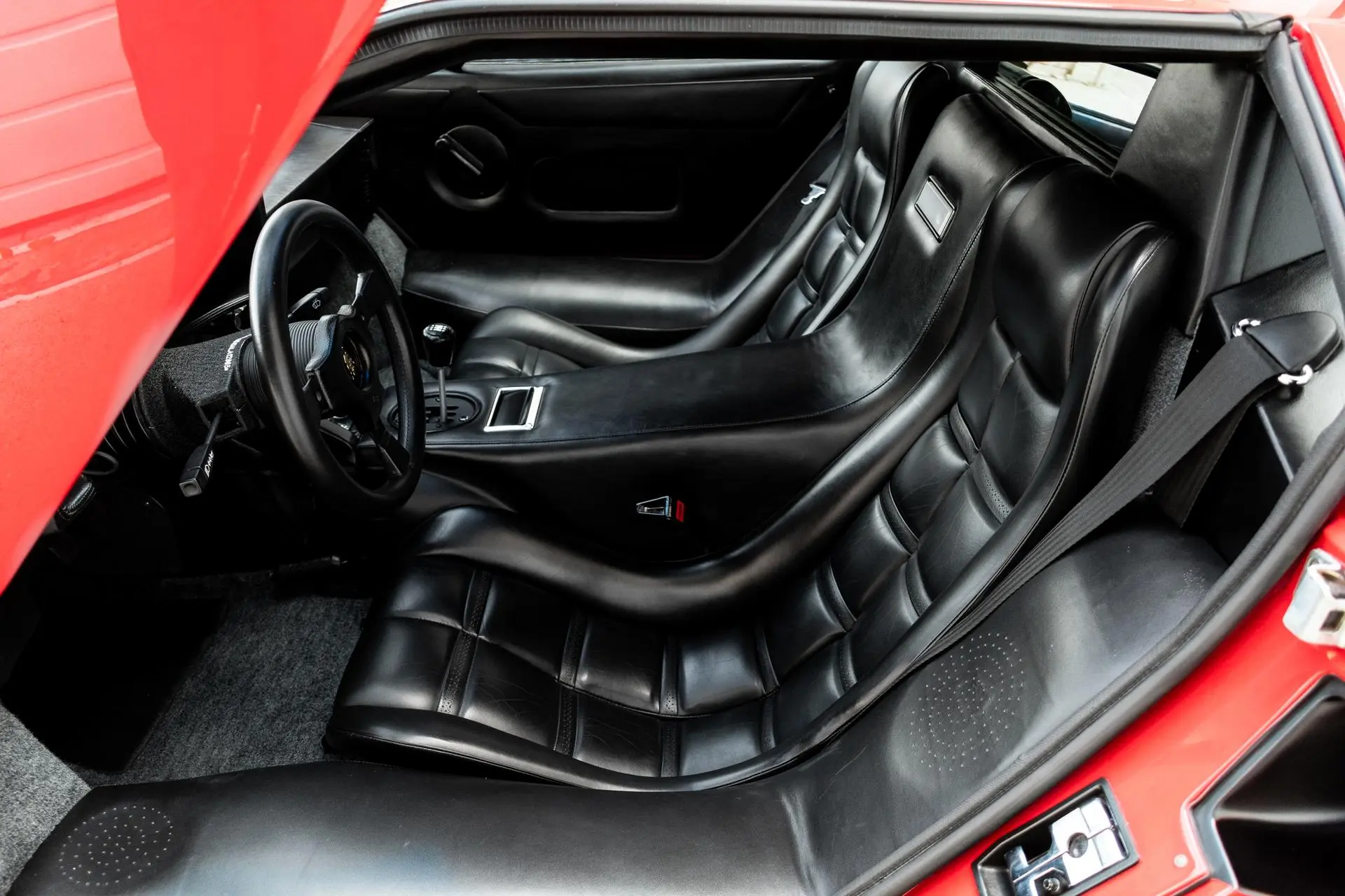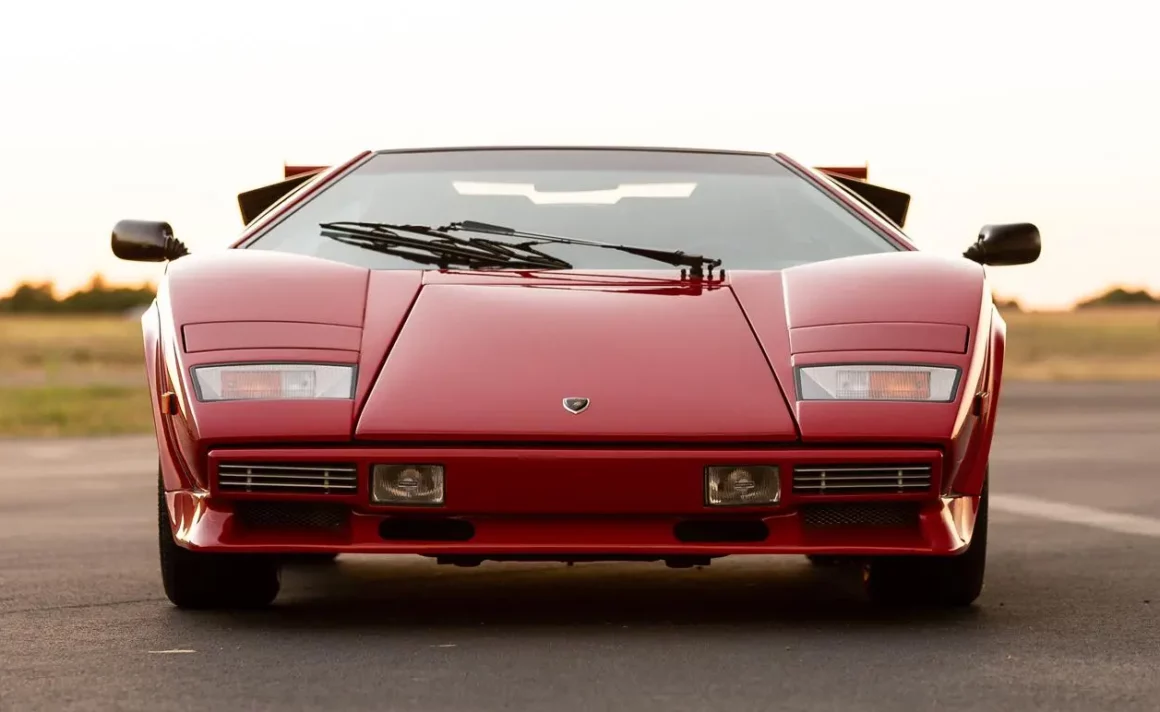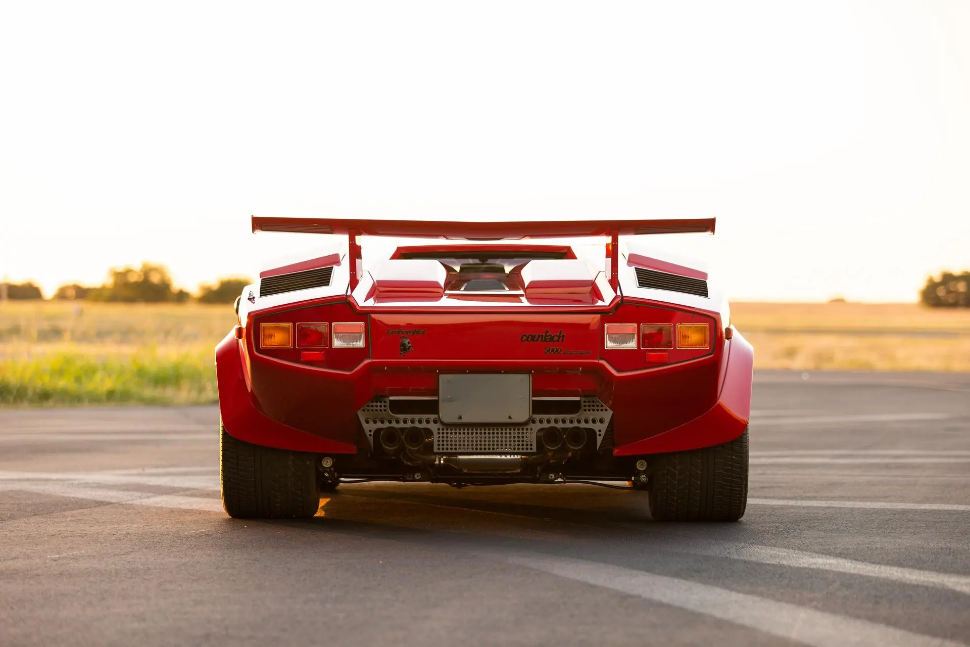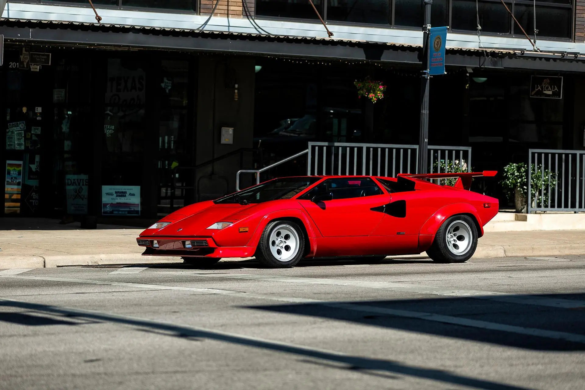 Rouge Siviglia (immaculé) avec une sellerie en cuir noir (immaculé), équipée de son V12 original (immaculé) Quad-Cam de 5L2 injection (conçu par Giotto Bizzarrini) disposant d’un angle de banc de cylindres de 60°, de quatre soupapes par cylindre et d’une injection de carburant Bosch K-Jetronic, cette Countach a été évalué en usine à 414 chevaux. Il est jumelé à une transmission manuelle cinq vitesses. L’ensemble affiche seulement 19.000 kms.