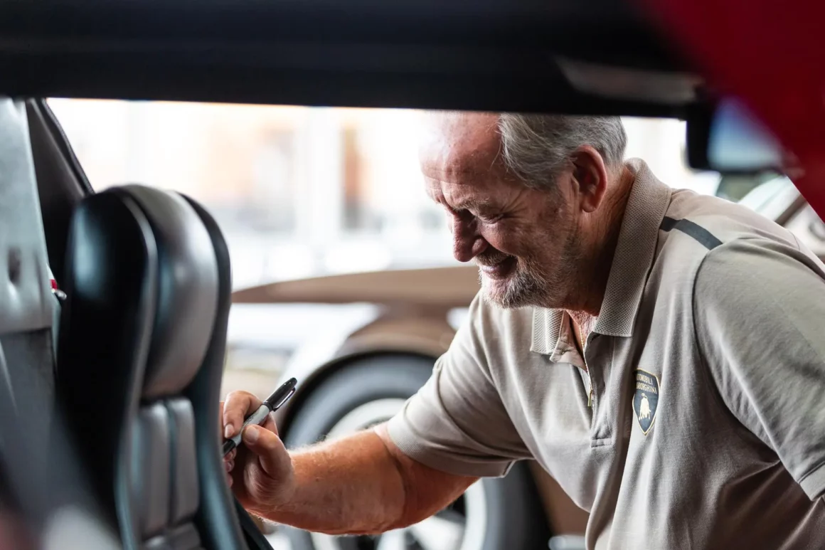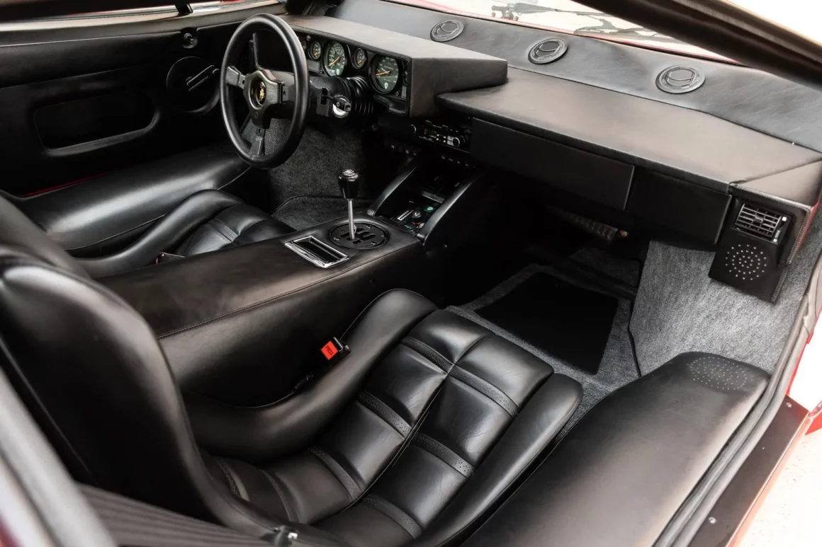 Le volant Raid gainé de cuir encadre un compteur de vitesse gradué jusque 320 km/h, un tachymètre avec une ligne rouge à 7.500 tr/min et des jauges/compteurs auxiliaires. L’odomètre à cinq chiffres indique 19.000 kilomètres (12k miles). Valentino Balboni affirme que la Countach n’a subi aucun accident, ni incident, ni problèmes majeurs (ce qui sous entend que divers problèmes mineurs sont cachés sous silence pour ne pas effrayer…