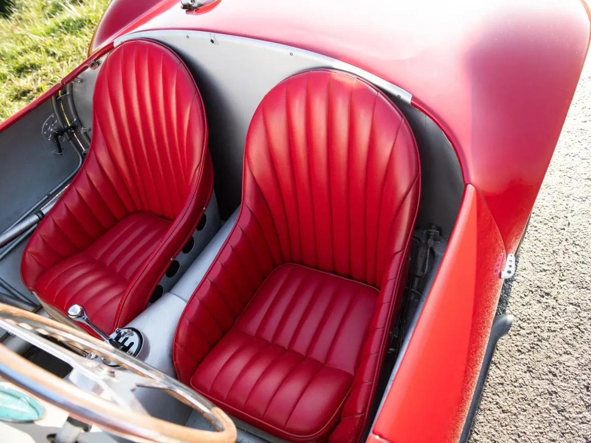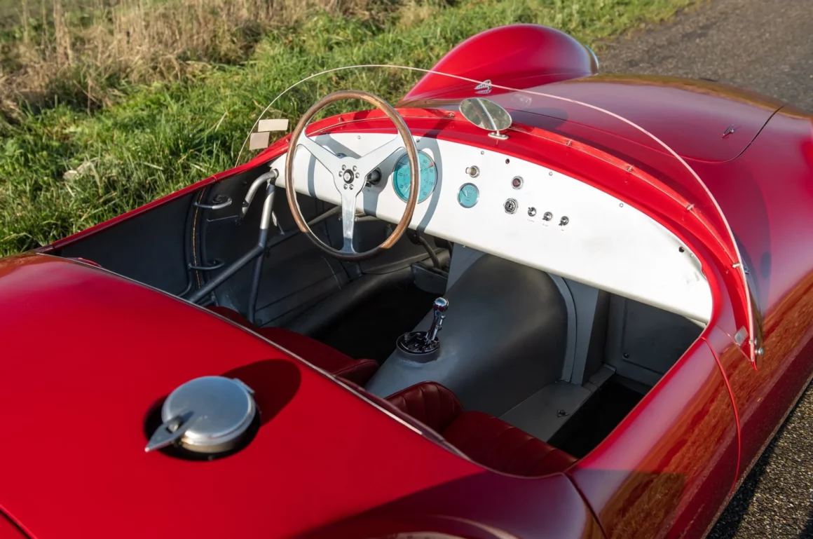 Concernant cette #A6GCS/2067, un livre de 2022 réalisé par des experts de la marque Walter Baumer et Jean-François Blachette, indique cette voiture a achevé son assemblage en octobre 1953, a été peinte en rouge et équipée de composants distinctifs, y compris un pare-brise large et une calandre avant chromée avec 13 barres verticales de chaque côté de la barre centrale. Commandée par l’importateur américain Tony Pompeo.