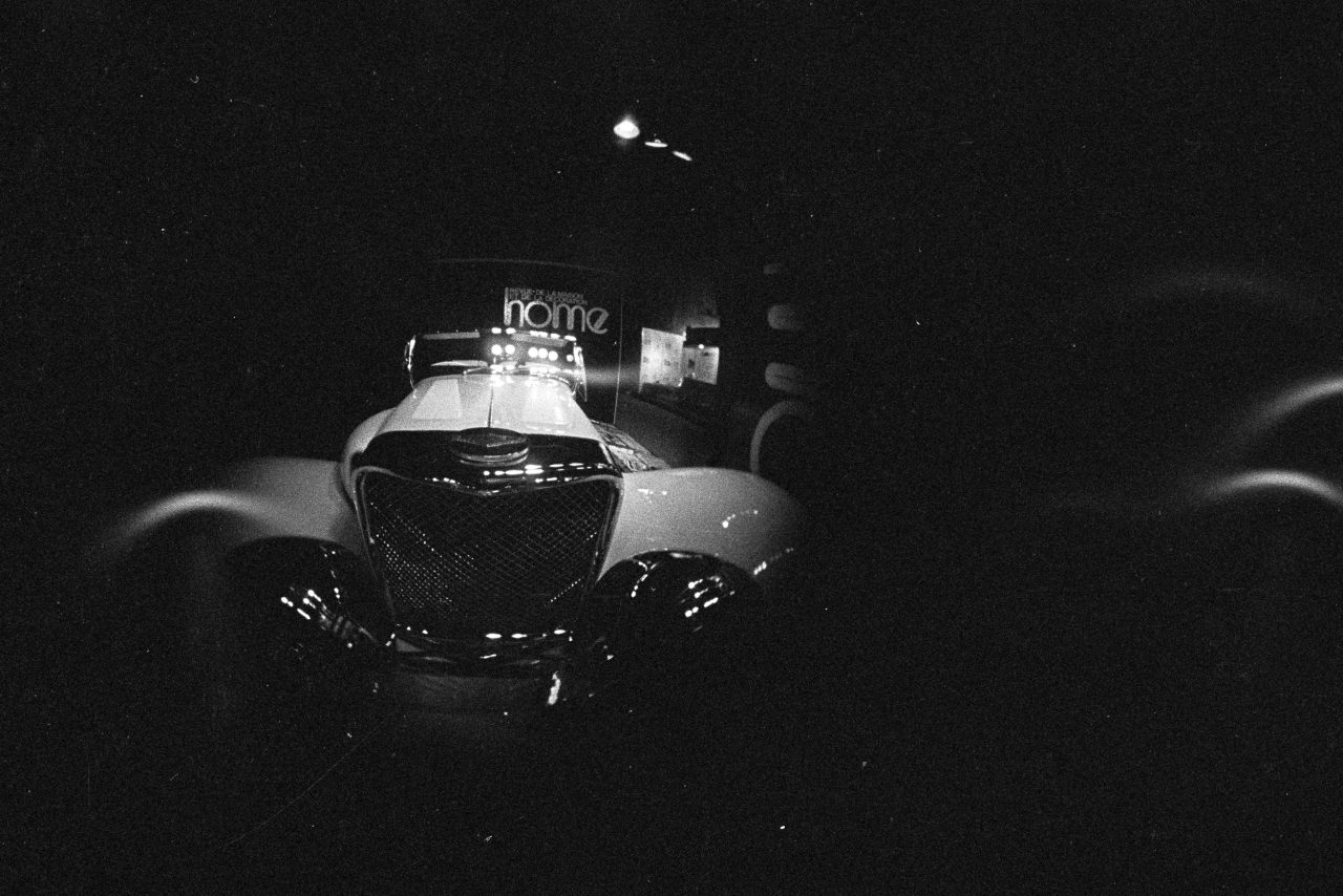 Une fois qu’il tourne…, il faut prendre son temps, bien laisser chauffer, en profiter pour regarder les compteurs, répondre aux questions des passants…, éventuellement lire son journal (car le bestiau ne chauffe pas vite)…, puis, le pied gauche appuyant à “donf” sur la pédale de gauche (les freins), il suffit de placer le sélecteur de la boîte automatique sur “D” (Drive), puis d’actionner très légèrement la pédale de droite (l’accélérateur), tout en relâchant la pédale de gauche (les freins)… et la Panther J72 s’ébroue…