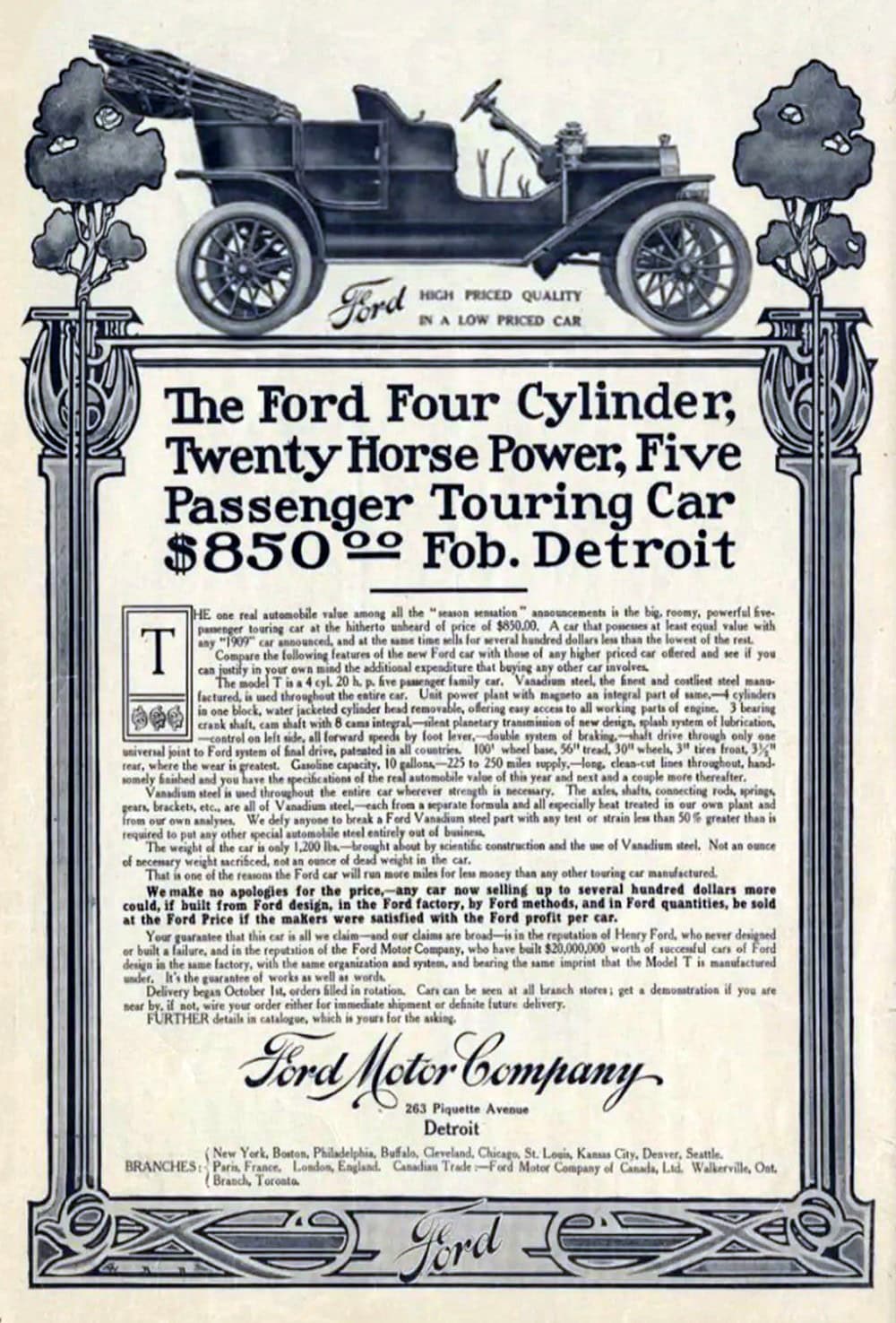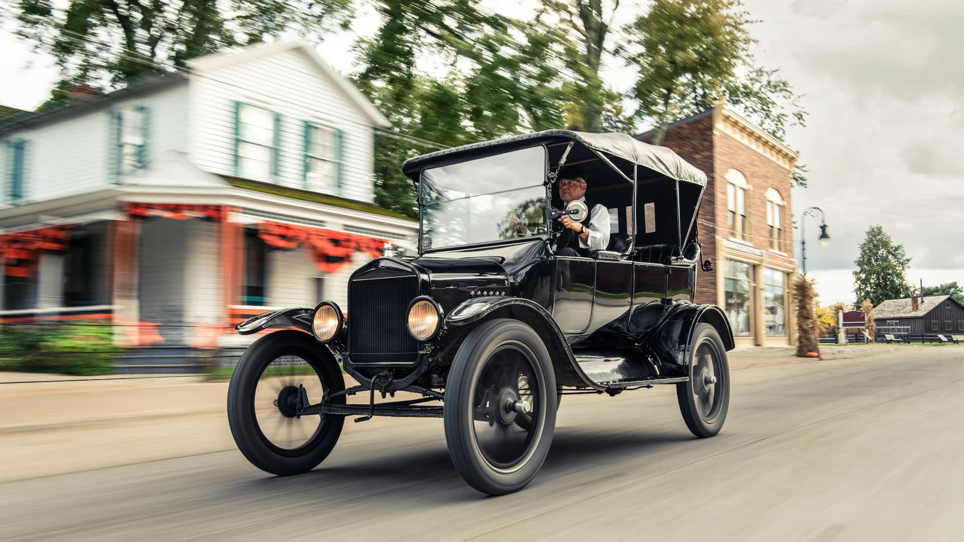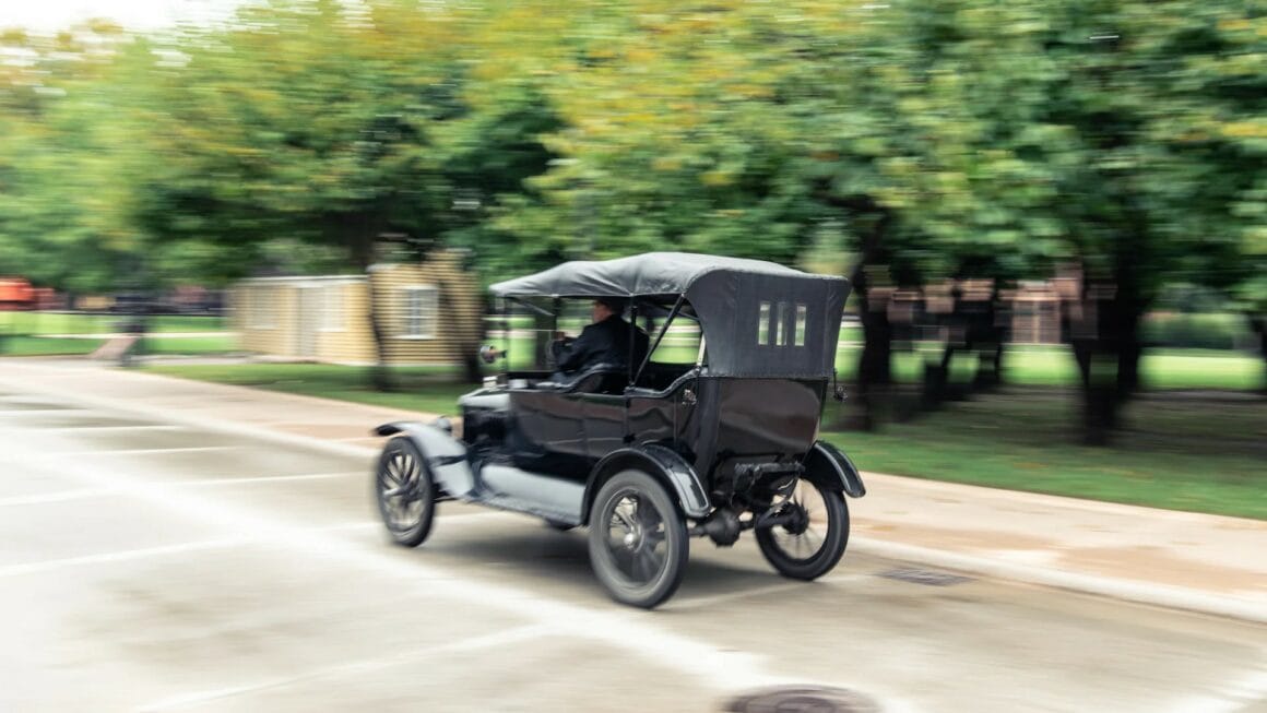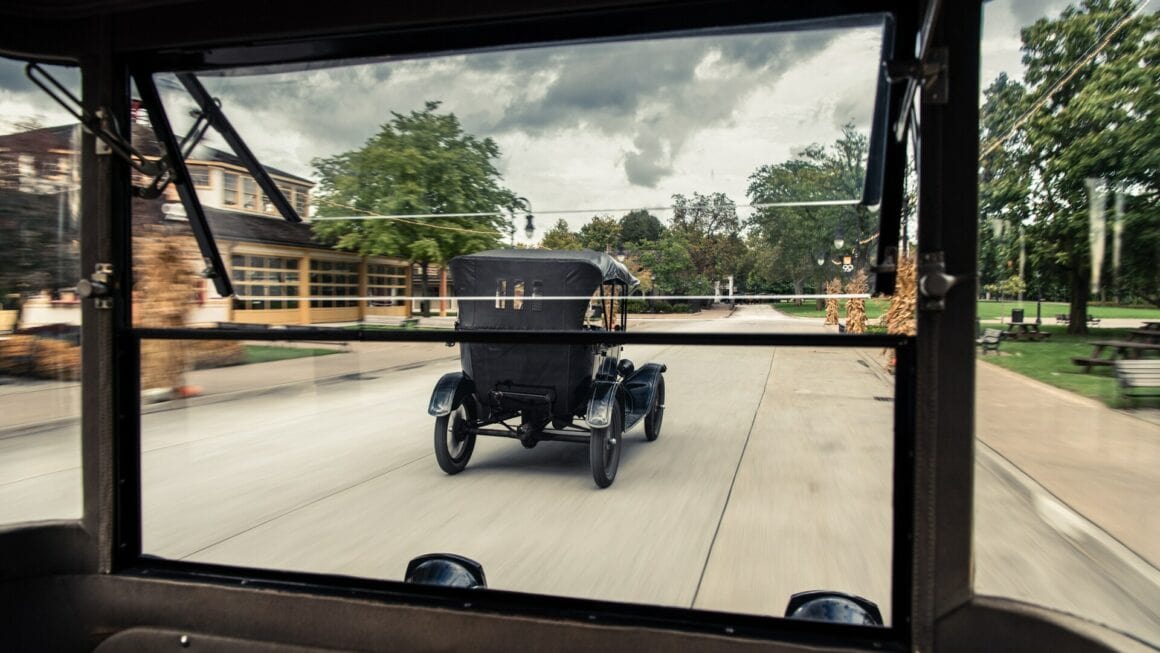 Le conducteur d’une Ford modèle T est intimement impliqué dans le processus d’introduction du carburant dans le moteur et d’allumage, en manipulant littéralement les éléments internes de la transmission avec ses propres pieds. Sa simplicité basique oblige à une unité avec la machine. Conduire la Ford T demande beaucoup de travail, mais c’est une forme de magie que vous n’obtenez tout simplement pas dans le salon sur roues qu’est la Detroit Electric qui est un Yacht urbain, alors que le modèle T est un radeau motorisé qui a été conçu pour aller n’importe où… Dès que vous serez familiarisé avec ses commandes, vous commencez à avoir l’impression que n’importe où est exactement là où vous pouvez aller, avec l’aide de quelques clés et de quelques stations-service…