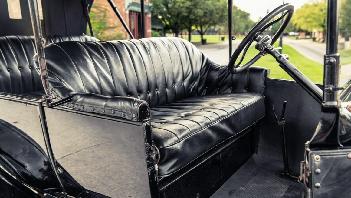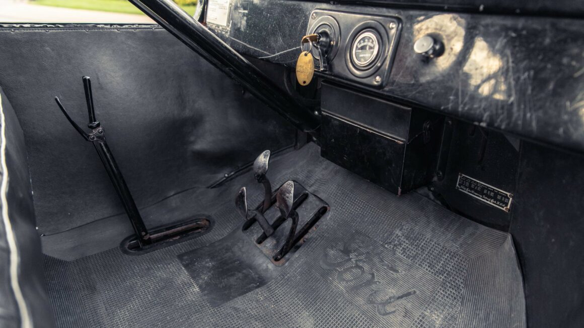 La Ford, en revanche, est aussi avare et basique que la Detroit est chic et classe. Les sièges sont simples recouverts d’un similicuir bon marché, et le plancher en bois brut est recouvert d’un tapis en caoutchouc coupé approximativement, il est supposé imperméable, puisque notre voiture d’essai a un toit rabattable mais pas de vitres latérales, mais rien n’est certain… Il n’y a pas non plus de porte conducteur, car pourquoi en avez-vous besoin ?