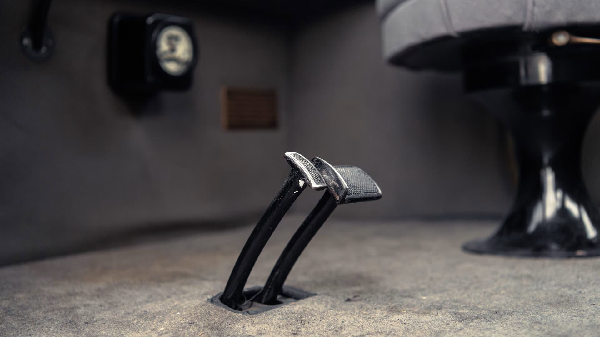 Voici comment procéder : si la voiture est froide, tirez sur le levier d’amorçage à côté du radiateur pour régler le starter. Tirez le levier du frein à main aussi loin que possible vers l’arrière et assurez-vous que le levier de calage de l’allumage, c’est-à-dire celui de gauche sur la colonne de direction, est jusqu’à la position complètement ralentie. Tirez l’accélérateur (c’est-à-dire le levier de droite) jusqu’au cinquième ou sixième cran et tournez le contacteur d’allumage sur Batterie. Si le moteur est chaud et que le calage de l’allumage est légèrement avancé, le moteur peut s’allumer tout seul à ce stade. En supposant que ce ne soit pas le cas, appuyez sur le bouton de démarrage et le moteur devrait démarrer immédiatement.