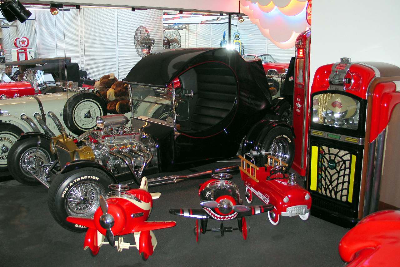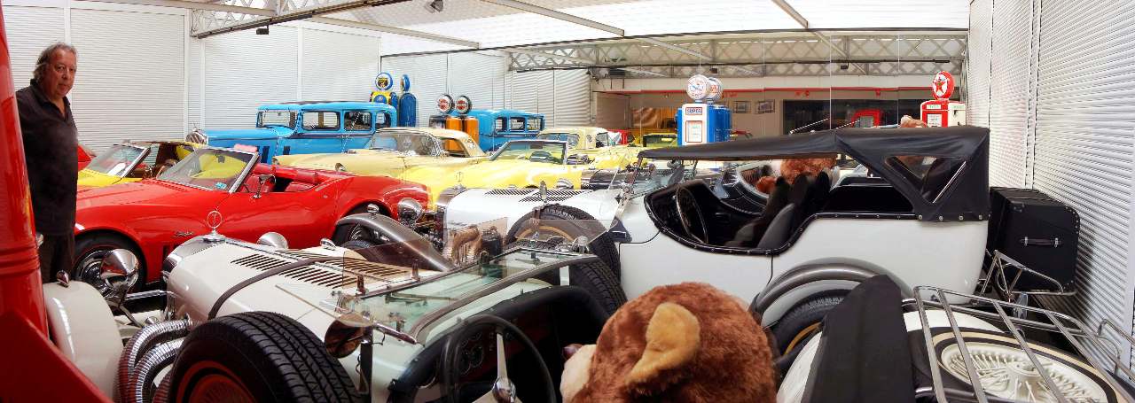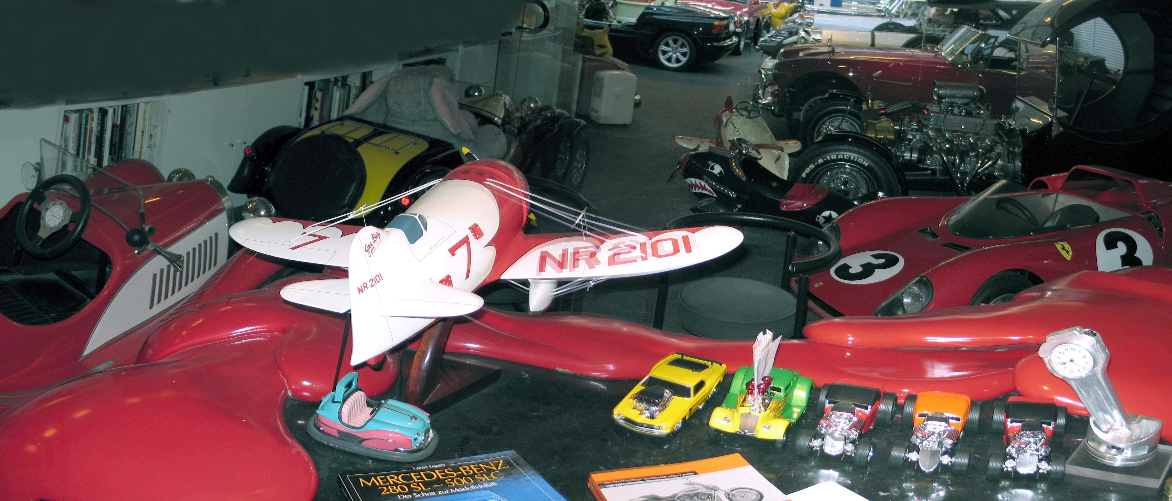Une collection de chaussures, de slips, de cravates, de boîtes en fer, de livres, d’autos miniatures, de voitures réelles, anciennes, moyennement modernes, des Kustoms, des Hot-Rods, des chefs-d’œuvre et des bricoles, des mascottes de radiateur et même des ferrailles ?