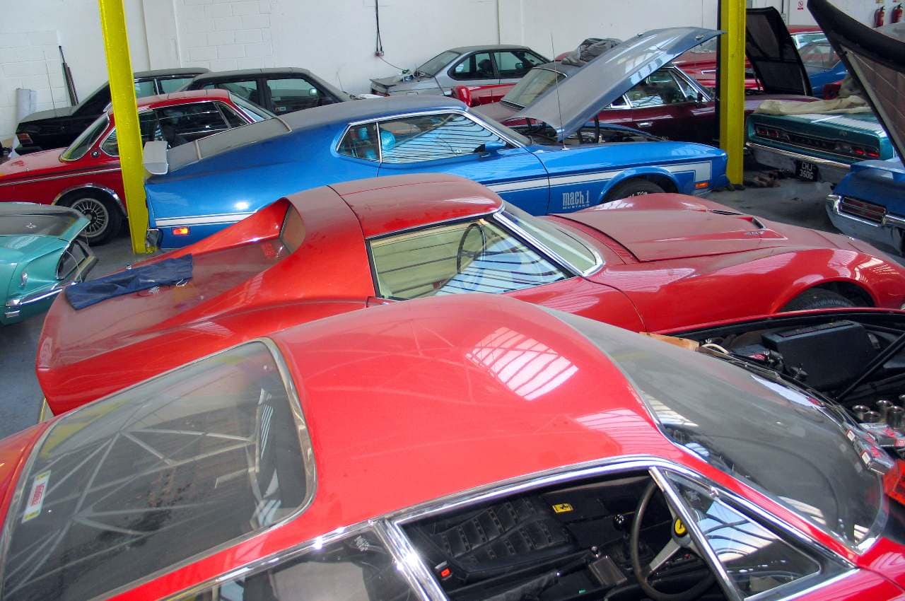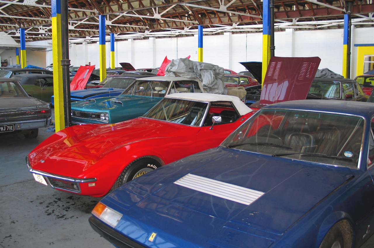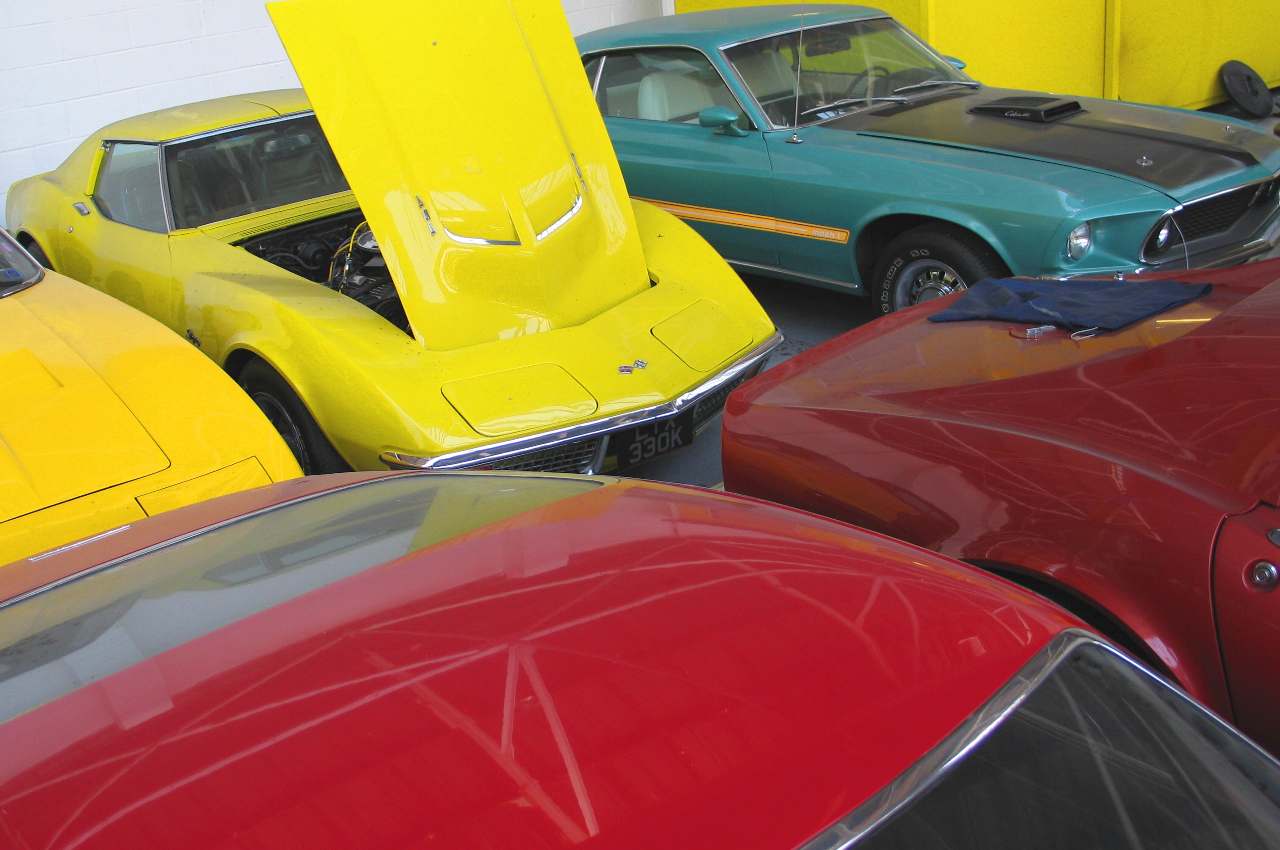 A ce point, c’était trop, car j’avais en sus, toutes les séries de Clénet’s, toutes les séries de Corvette’s et Mustang’s…, un capharnaüm titanesque, un bordel, un bazar…, une partie visible toujours “impec”, bien rangé… une autre dans un hangar… ou les bagnoles prennent la poussière, la crasse…