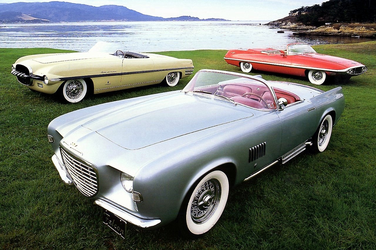 En 1955, apparaissent trois nouveautés, les Chrysler Falcon, Flight Sweep I (cabriolet) et Flight Sweep II (coupé), ces deux dernières annoncent les Chrysler de série en 1957… quant à la Norseman, elle aura un destin tragique… attendue avec impatience, elle n’arrivera jamais et sombrera en mer avec son transporteur, le paquebot Andrea Doria. En 1956, c’est au tour de la Chrysler Dart, laquelle sera modifiée en 1957 et présentée sous le nom de Diablo.