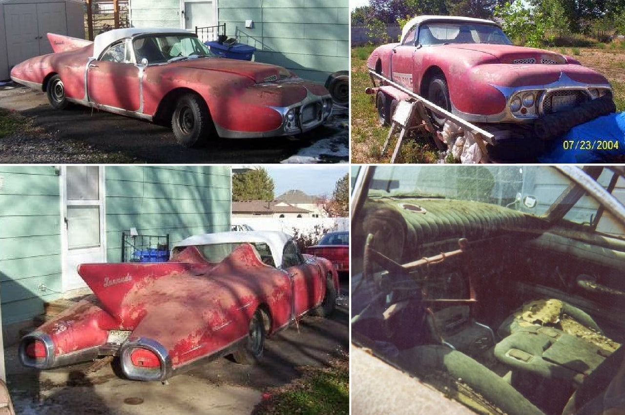 Et l’affaire s’est terminée là… quoique pas vraiment… le patron du bar a fait restaurer la voiture peu après me l’avoir montrée dans le but de m’escroquer… et a tenté de la vendre chez RMAuction qui l’a finalement retirée de la vente pour tromperie… la “chose” a ensuite été re-présentée dans d’autres ventes aux enchères, mais à chaque fois la vérité a éclaté au dernier moment et la voiture retirée des ventes ou elle était à chaque fois annoncée pour 150/175.000 dollars… Le fait est que la voiture y était annoncée mensongèrement comme un véhicule Chrysler Corp. d’origine… alors que ce n’est pas le cas, ayant été construit par une personne sans aucun lien avec Chrysler. Le véhicule est équipé d’un capot de camionnette Ford F-1… les feux arrière sont ceux d’une Ford des années ’60…. Plymouth-Chrysler n’aurait jamais utilisé des pièces usagées de Ford pour un concept-car.., cette voiture est aussi laide que des saignements rectaux…