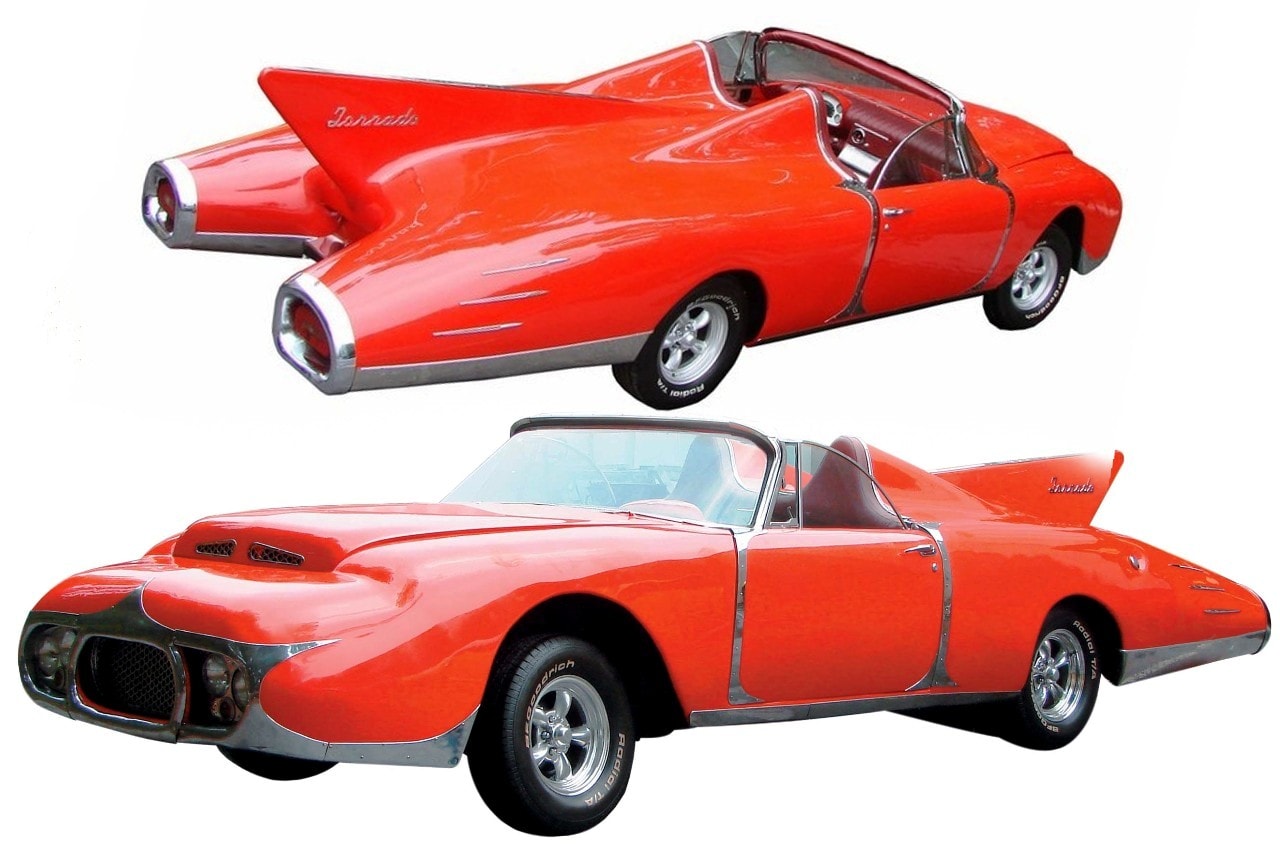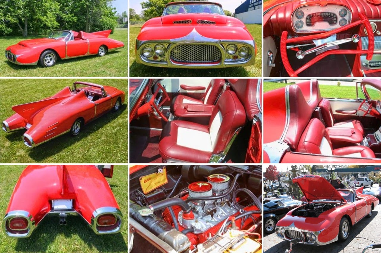 – Le concept de cette auto a repris certains de ces indices de style de missiles comme l’aile de grosse queue, l’échappement rocket type twin, les doubles têtes de carénages et un nez d’avion, un symbole du futur design américain, de l’innovation et du style, la Tornado a été un aperçu de ce que le nec plus ultra à réaction ou voitures à turbine-moteur de la prochaine décennie pourrait ressembler. En 1964, elle a pris la deuxième position pour le Radical Custom Design chez salon des Sabres de l’Auto à Denver et a été présentée dans des magazines automobiles. Elle est pour vous contre 500.000 dollars US cash…