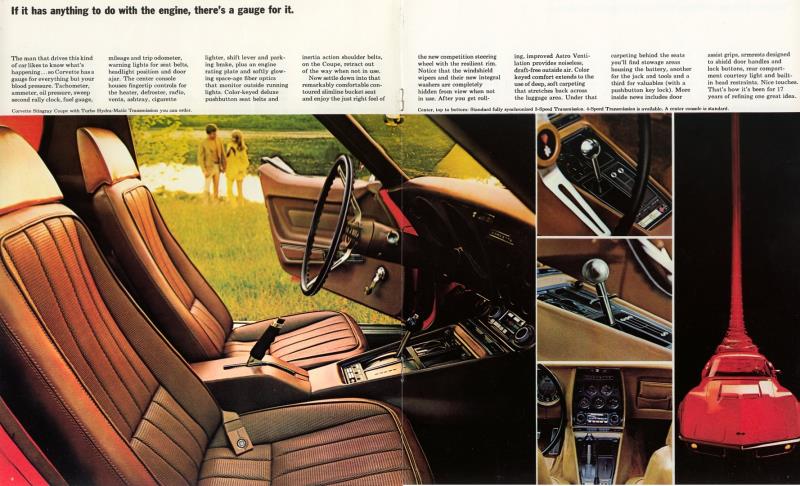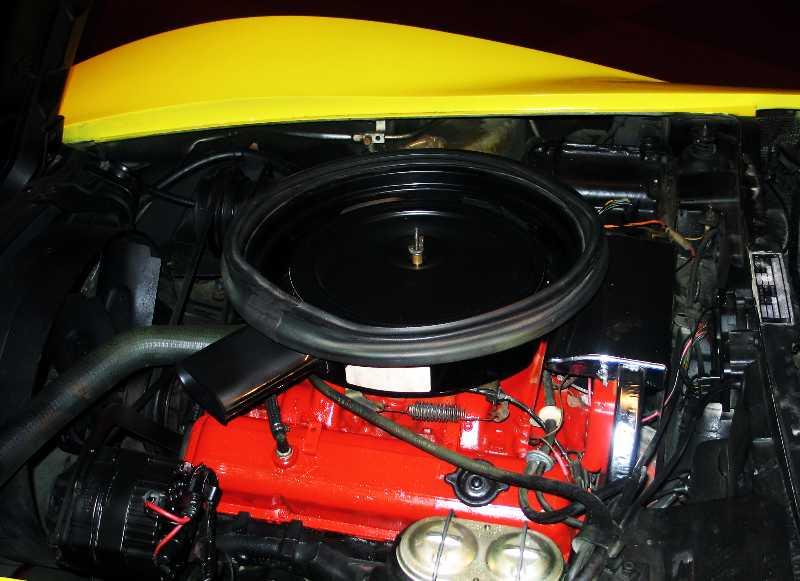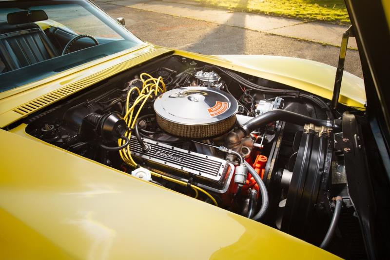 1971 : en raison de la baisse d’indice d’octane due aux mesures anti-pollution, les compressions moteur tombent de 10:25 et 11:25 à 8:5 et 9:0, il s’ensuit forcément une forte baisse de puissance. Dans la gamme 5733cc, on trouve le L48 à 270cv et le LT1 à 330cv. Pour les 7440cc, il y a le LS5 à 365cv et le LS6 à 425cv.