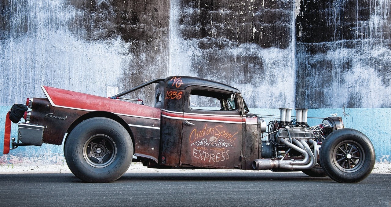 Il dépense en 7 ans tous les dollars qu’il ne possède pas vraiment pour construire un Rat-Rod Pick-Up totalement dingue… et en 2012, le monde “ébloui” (re-sic !), peut admirer son œuvre : l’engin de ce reportage !