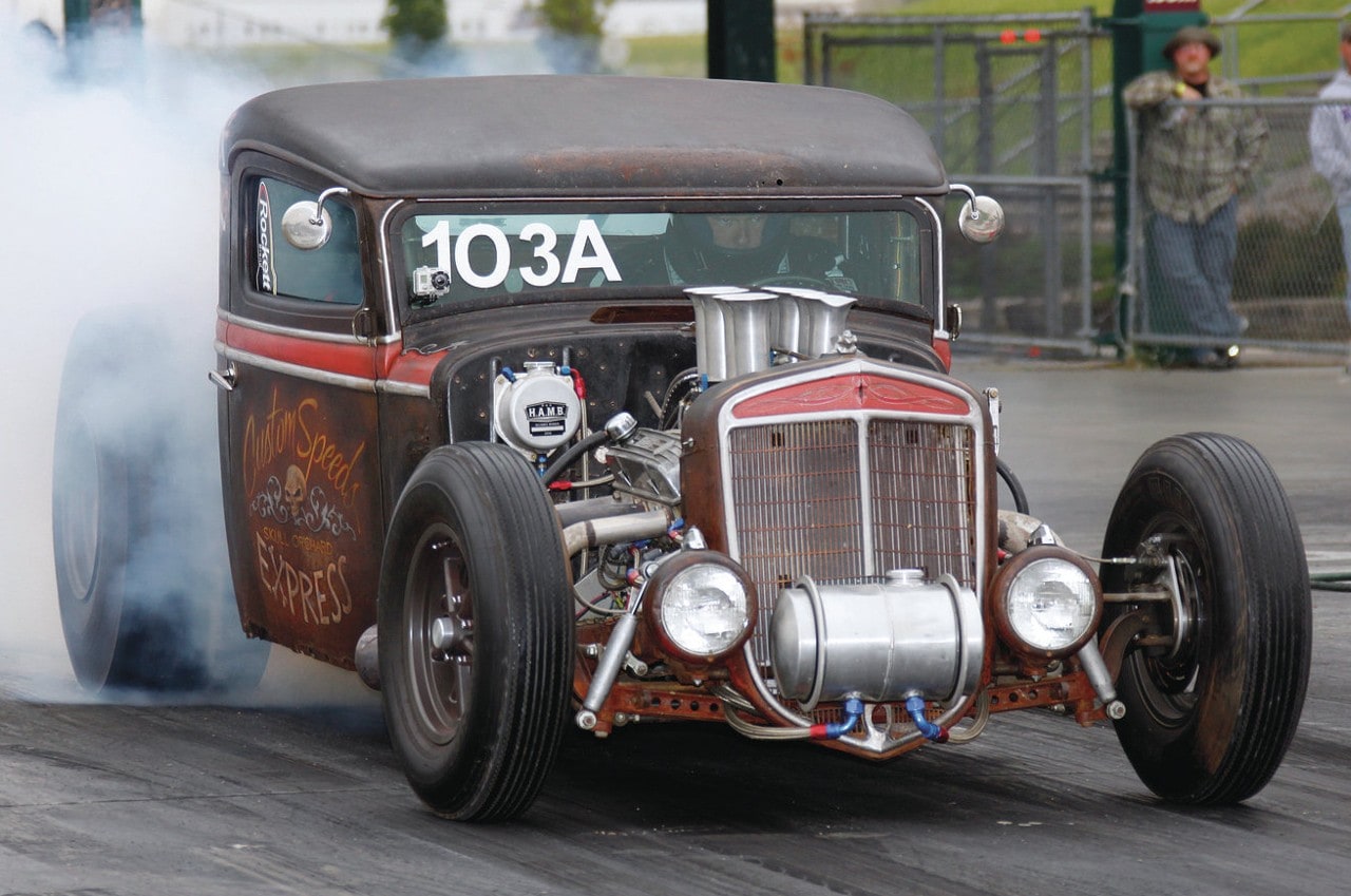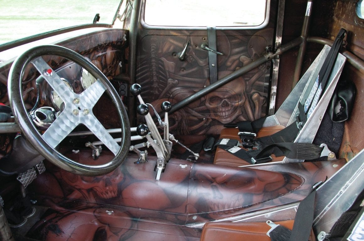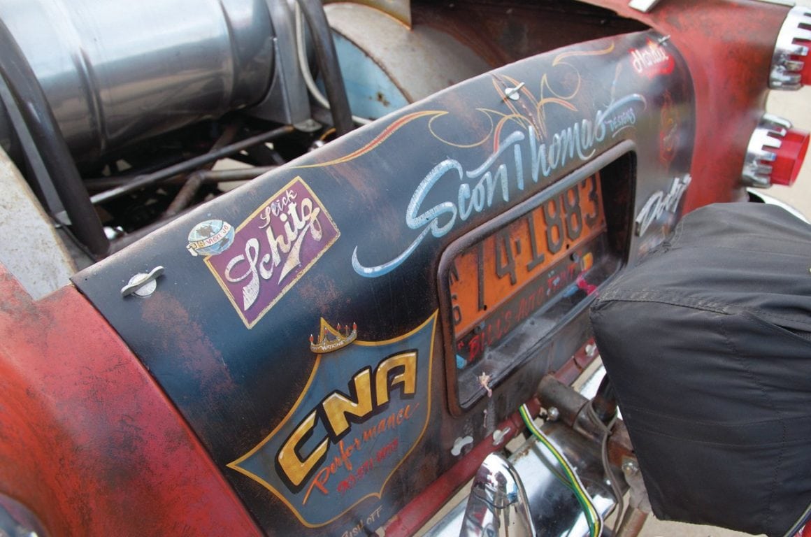 Constitué à 65 % de pièces récupérées dans des casses automobiles (à vue de nez, hein), son Rat-Rod a été réalisé à la va-comme-je-te-pousse.