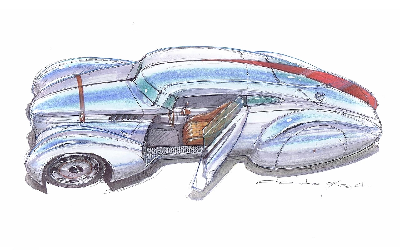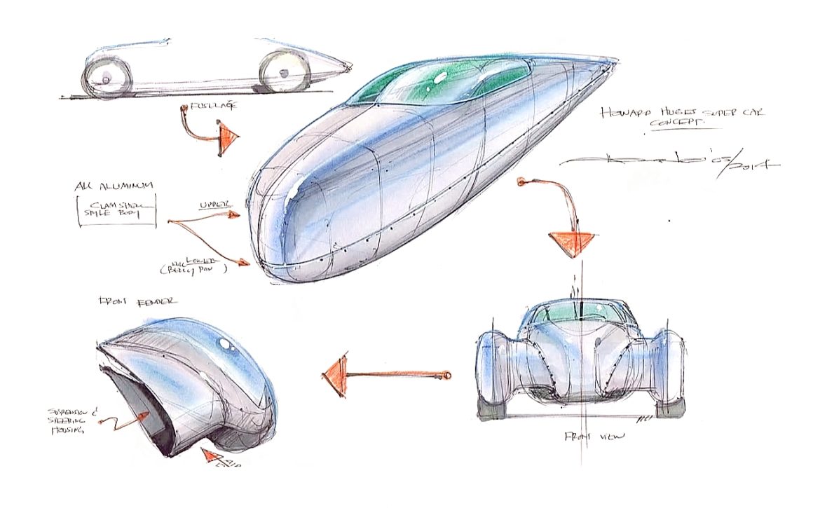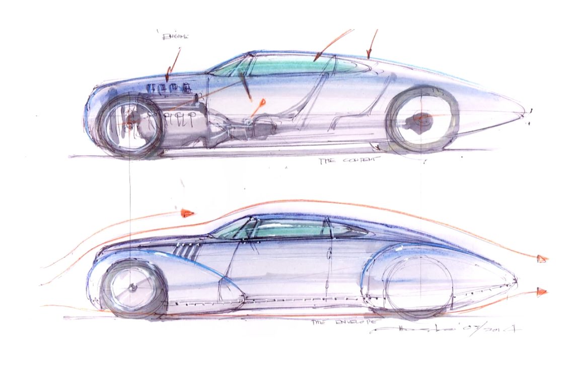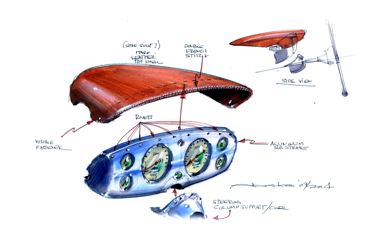 –“Appellée “Helios”, car elle est nommée d’après le Dieu grec du vent, ma voiture fusionne l’esthétique simplifiée des avions d’après la première guerre mondiale, c’est la renaissance du 21e siècle des carrosseries classiques. Bien que presque tous nos projets jusqu’à présent aient été des recréations inspirées par des véhicules Vintage, je suis fasciné par le concept de revisiter l’histoire à ma façon…, célébrer une époque particulière dans une approche révisionniste de la conception des transports a rempli mon cerveau avec des tonnes d’idées et de théories”…
