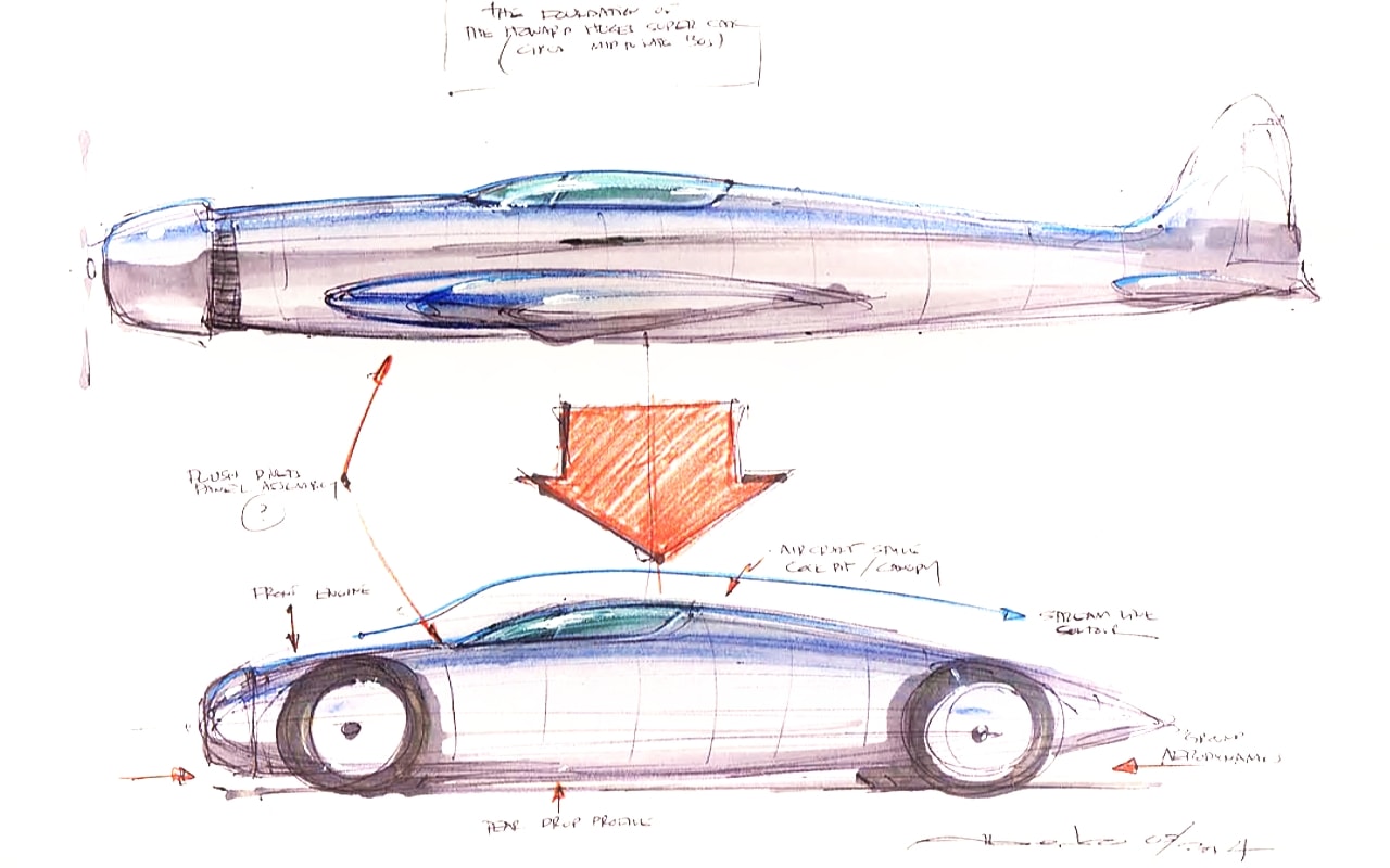 Ces théories ont donné naissance à un monde totalement différent dans l’esprit de Ward…, un endroit où les concepteurs d’automobiles ont adopté l’esthétique de l’avion une décennie plus tôt, où la frugalité provoquée par la grande dépression et la seconde guerre mondiale n’existait pas…, une époque où la notion de quantité primant sur la qualité n’a jamais envahi la révolution du design !