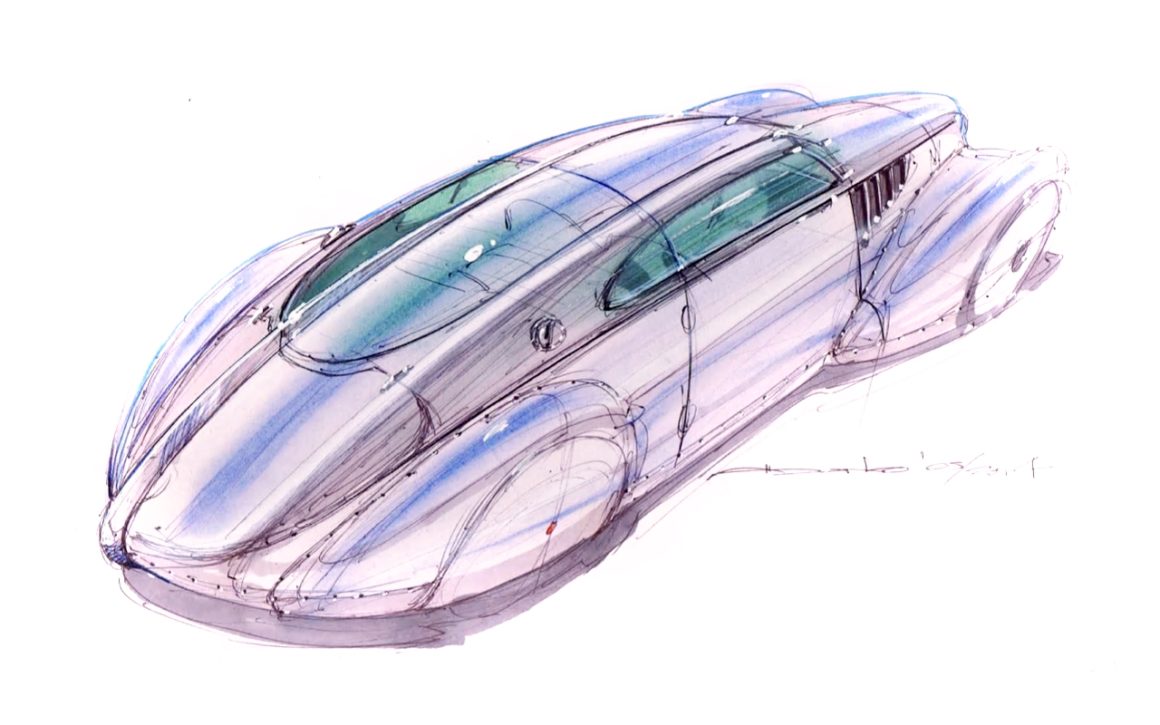 Tous ces aspects se retrouvent d’une manière ou d’une autre dans l’Icono Helios, un streamliner de style années 1930 utilisant les batteries et le train roulant de la berline électrique de Tesla…, mais elle n’existe pas encore, pour le moment, il ne s’agit que d’une série de dessins (Topline) sur la planche à dessin de Jonathan Ward !