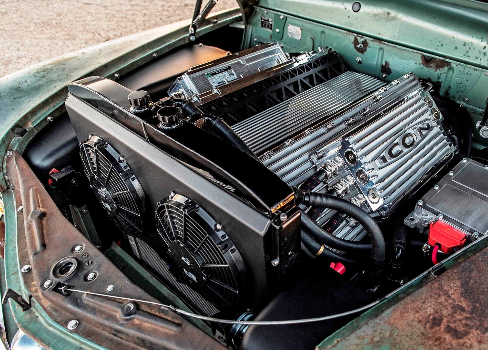 En attente de cette création, Jonathan Ward s’est lançé dans un mix de cette idée électrifiante avec une carrosserie rouillée de coupé Mercury 1949 équipée d’un moteur bi-électrique Tesla de 400 chevaux et 470lb-ft fonctionnant sur une configuration de batterie 85kWh Tesla.