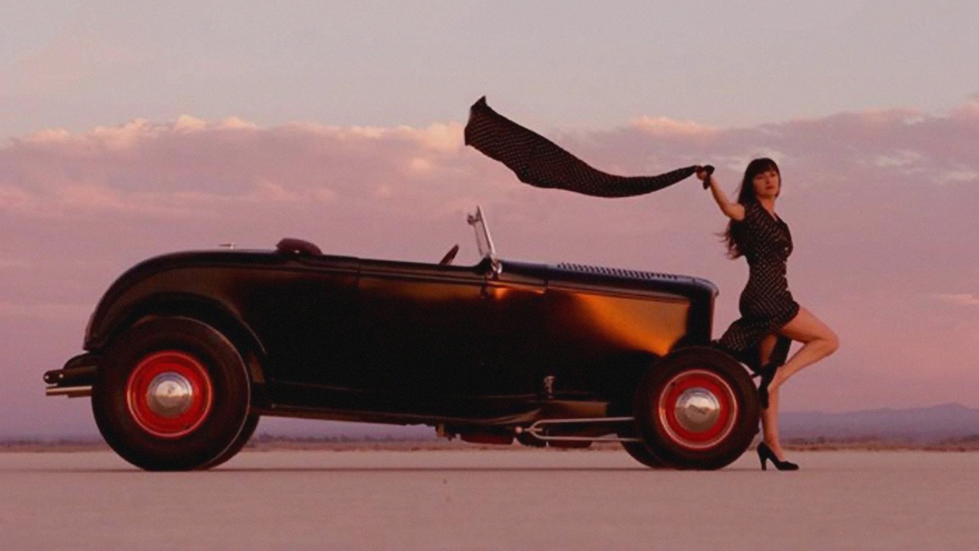 Faith Granger : Je suis passionnée de Hot-Rod’s, je m’en suis construite un avec lequel je roule quotidiennement… Un jour, j’étais allée très loin d’ici, au lac salé d’El Mirage, le lieu de pèlerinage de tous les mordus de vitesse, de risques insensés et de Hot-Rodding… Je traversais cette étendue sacrée comme une lame de sabre tranche l’air, comme une comète traverse le ciel. J’étais seule, il n’y avait que le bruit du vent et le rugissement de mon V8 alimenté par trois carburateurs Rochesters… et aussi les battements de mon cœur.