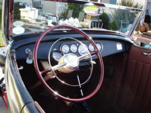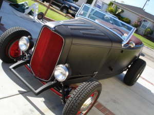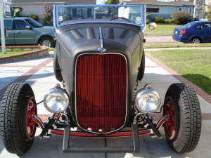 With his original 1932 frame, grill shell and gas tank, his old Guide headlights, his early 40’s original hub caps, his old red steelies, his Buick fine drums, his retro 50’s steering wheel, my roadster yells OLD SCHOOL loud and clear and it’s music to my ears.