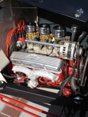 “The Deuce has seen four different engines to date, starting with a stock flathead, then another flathead, then a 283 and finally a 350 Chevy. In the seventies an old school 69 tri-power Rochester set-up was also added. The Powerglide transmission was then replaced with a 350 turbo. In 2000, the original 1932 frame was braced up with custom cross members, a new drive train was installed and the rear end was removed and replaced with an S-10 Chevy. The cam was also replaced with a race cam, nothing too radical but just enough to give you that “Fropotipo” loping feeling which I love so“.
