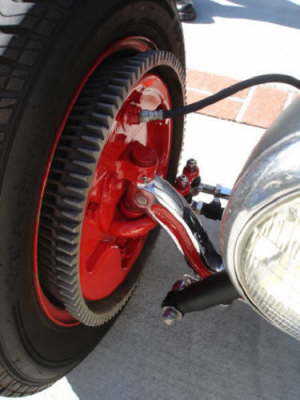 “Since that day, I have been doing a lot of work on my Deuce, replacing failing old parts, revamping the front suspension and steering, finally giving the roadster a paint job and replacing the radial tires with old school bias plys Firestone tall skinnies“.