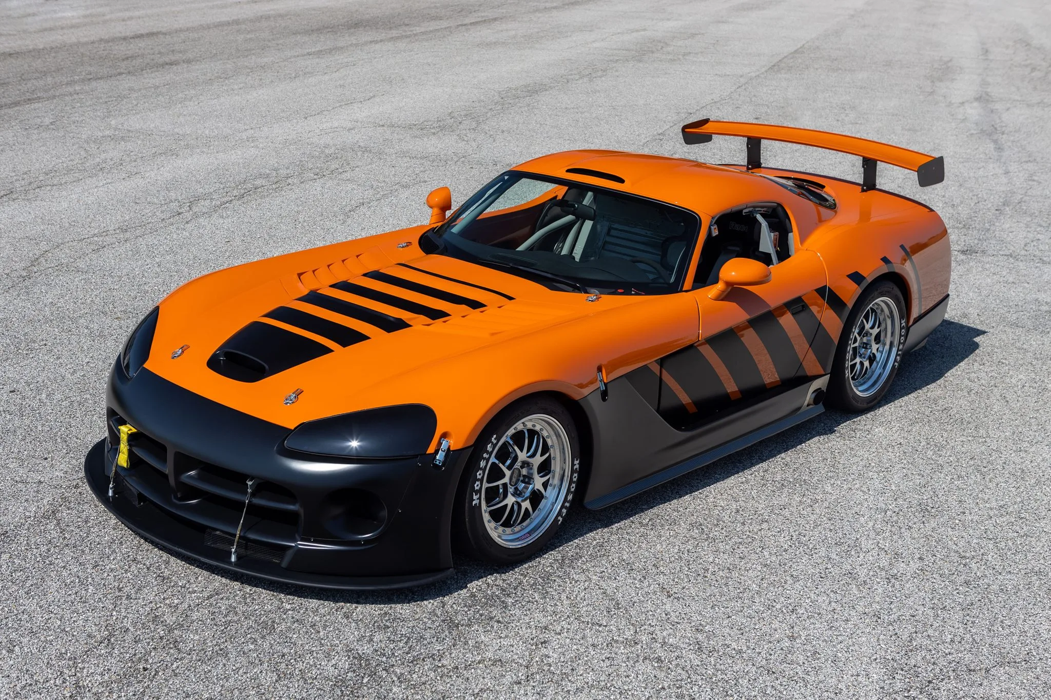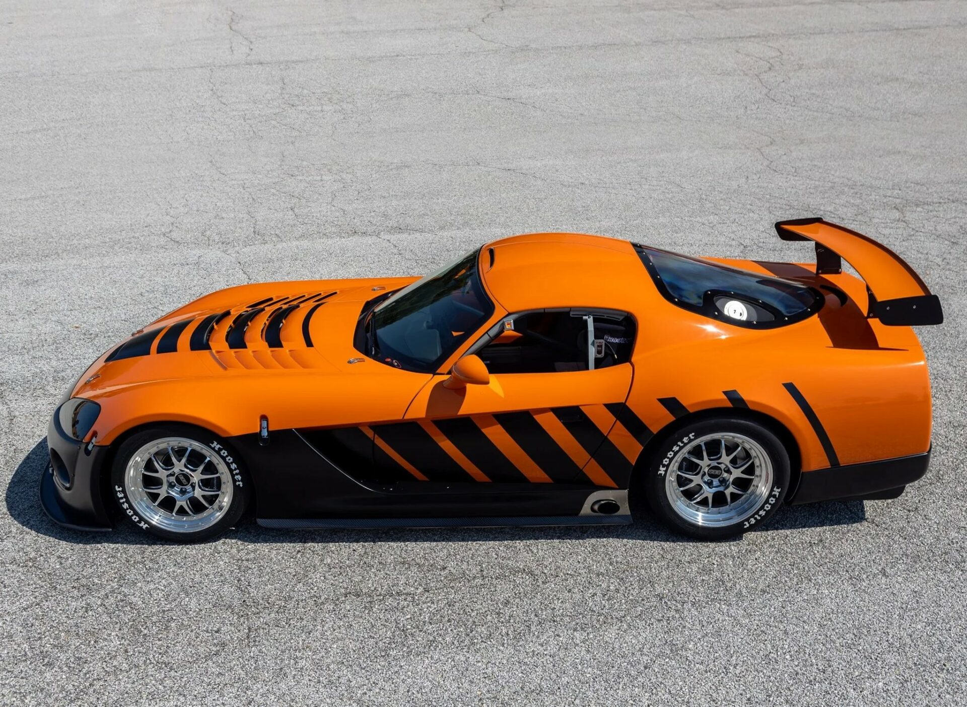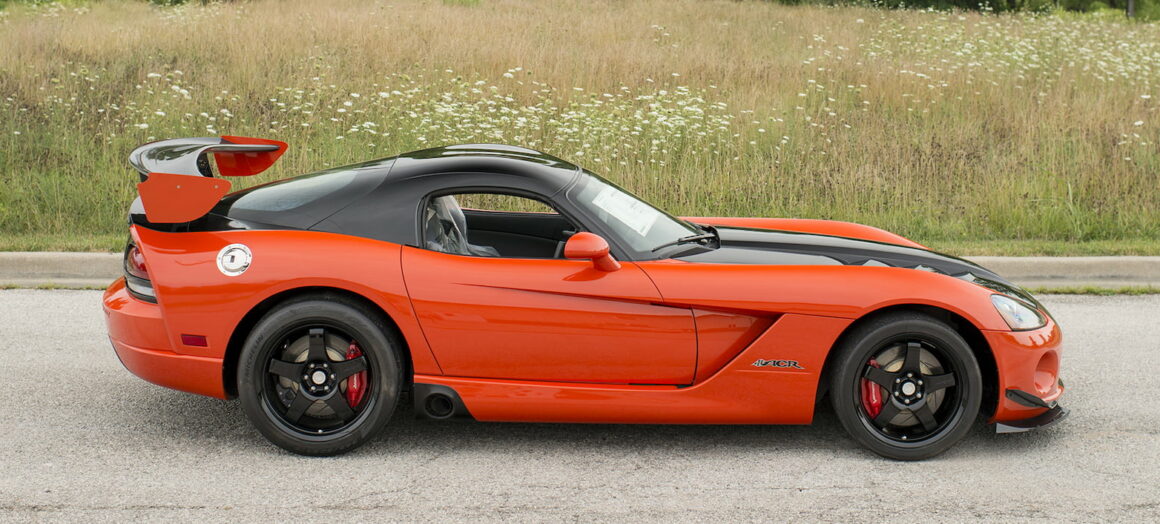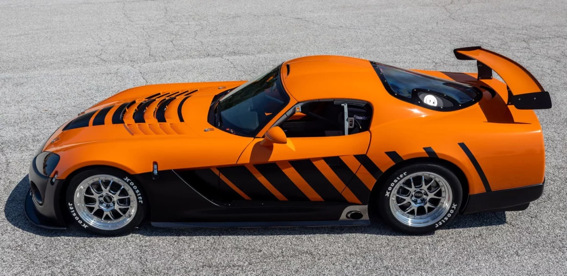 En 2004, 130 Dodge Viper’s Coupe-Compétition de cette troisième génération ont été développées et construites pour la “Viper Racing League” du “Viper Club of America” comme alternatives aux Viper’s modifiées par les particuliers désireux de participer aux courses sur circuits du “Viper Owner’s Invitational”, chacune portant un schéma de peinture différent conçu par le designer Chrysler Ralph Gilles. La Viper #C59 qui illustre cet article qui a été surnommée “TOXIC”, est peinte dans une livrée orange avec un design de rayures dégradées noires à effet stroboscopique et est motorisée par un V10 de 8L3 doté d’un arbre à cames plus haut que les voitures de route Viper contemporaines, moteur couplé à une transmission manuelle Tremec T-56 à six rapports avec un différentiel à glissement limité Dana 44/Ricardo disposant d’une conduite finale de 3,07: 1…