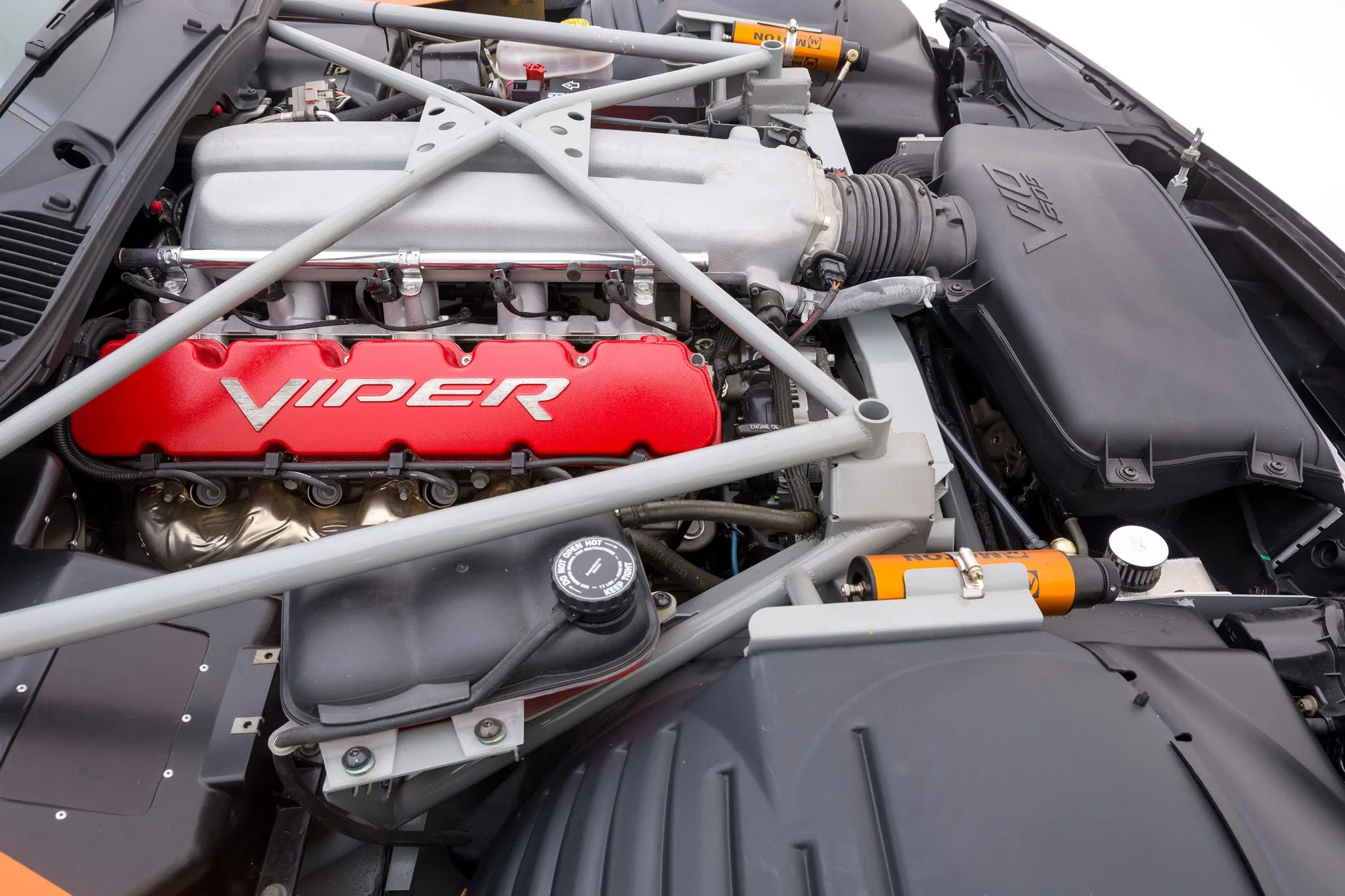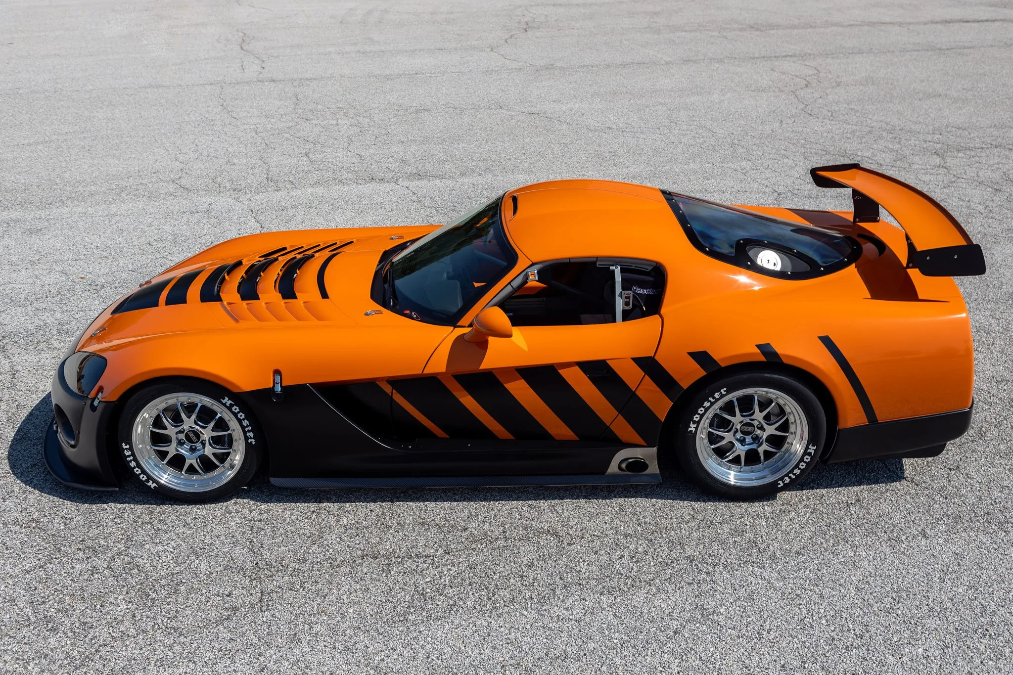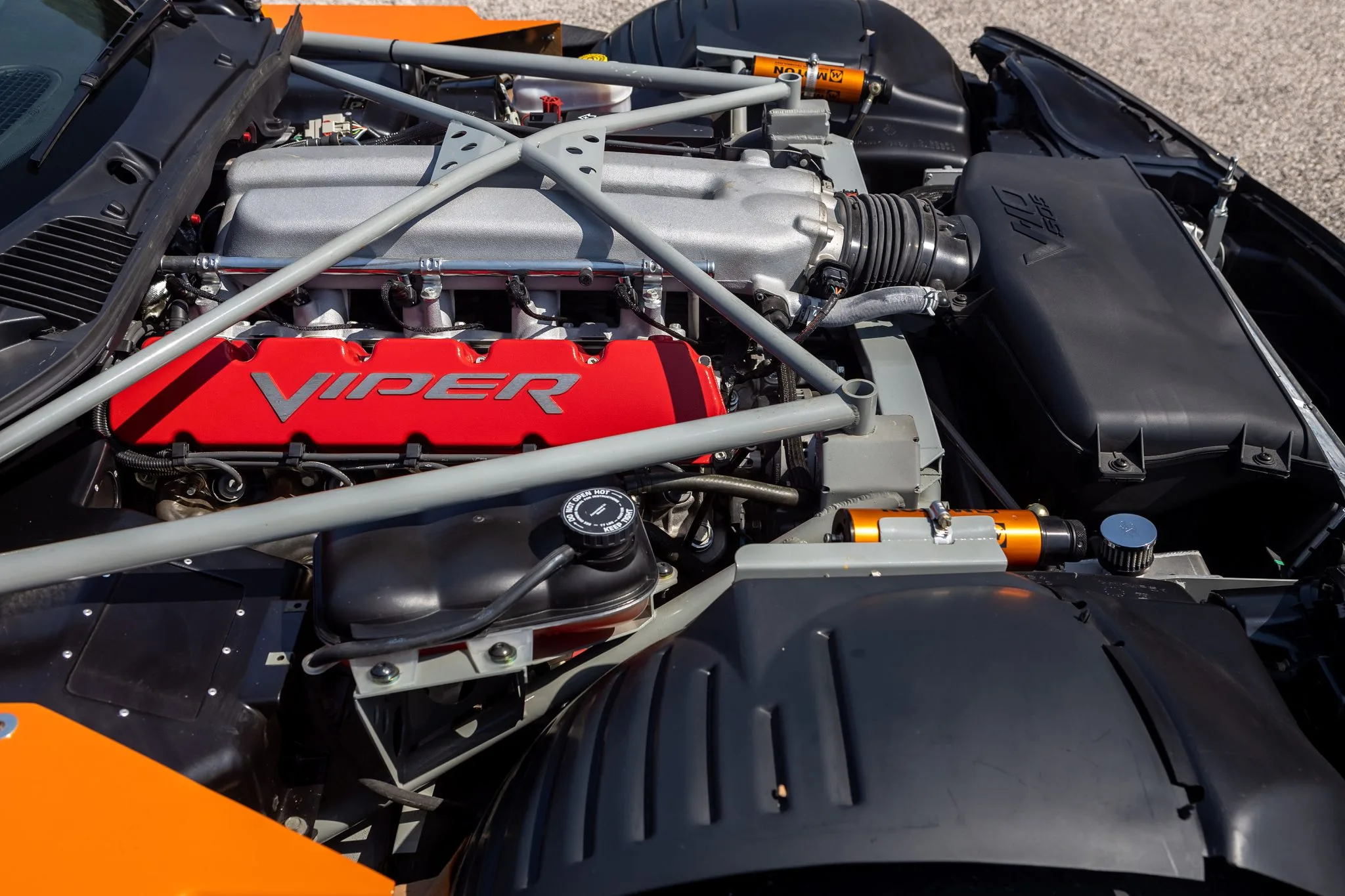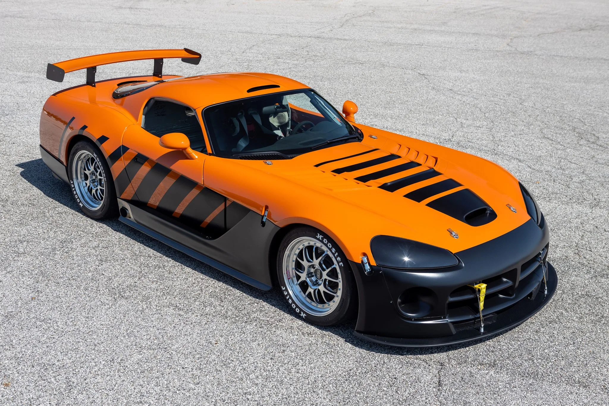En 2004, 130 Dodge Viper’s Coupe-Compétition de cette troisième génération ont été développées et construites pour la “Viper Racing League” du “Viper Club of America” comme alternatives aux Viper’s modifiées par les particuliers désireux de participer aux courses sur circuits du “Viper Owner’s Invitational”, chacune portant un schéma de peinture différent conçu par le designer Chrysler Ralph Gilles. La Viper #C59 qui illustre cet article qui a été surnommée “TOXIC”, est peinte dans une livrée orange avec un design de rayures dégradées noires à effet stroboscopique et est motorisée par un V10 de 8L3 doté d’un arbre à cames plus haut que les voitures de route Viper contemporaines, moteur couplé à une transmission manuelle Tremec T-56 à six rapports avec un différentiel à glissement limité Dana 44/Ricardo disposant d’une conduite finale de 3,07: 1…