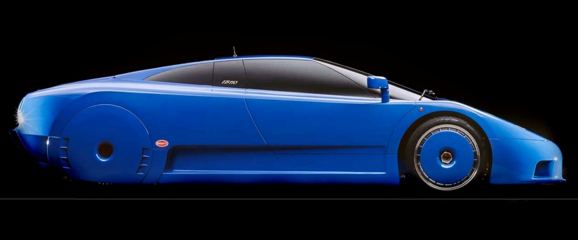 Pendant ce temps, “l’équipe technique” (les 3 hurluberlus cités) définit le cahier des charges. Le nom de l’auto est vite trouvé : EB110 ! Les initiales d’Ettore Bugatti avec qui Bugatti Automobili SpA n’a aucun lien, le 110 évoquant le 110e anniversaire d’Ettore Bugatti, qui tombe en 1991, date à laquelle l’auto doit être commercialisée. Un timing très serré, dont le but unique est de gagner avant-tout un max de flouze facile, oblige à renoncer à certaines options !