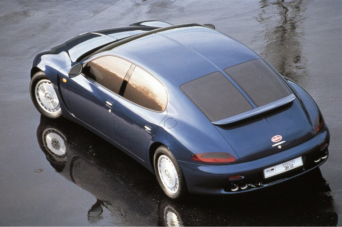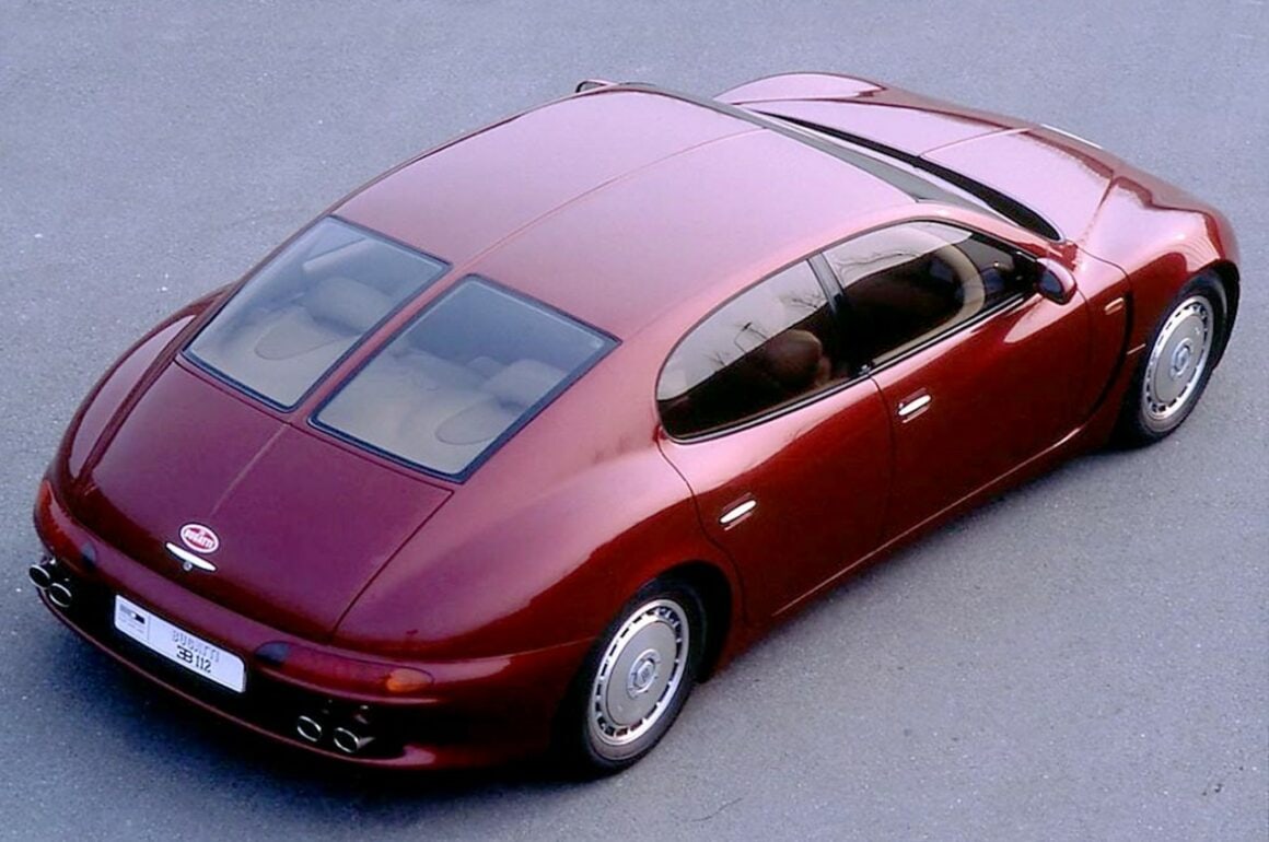 Un concept car Coupé 2 portes 4 places est réalisé/bricolé rapidement pour être présenté au Salon de Genève 1993, mais sans moyens financiers et techniques permettant de déboucher sur une réalisation en série, les deux berlines clones mais 4 portes réalisées en même temps sont également abandonnées, personne n’en veut, les deux EB112 4 portes étant encore plus moche que la EB112 Coupé 2 portes… Les trois engins sont quasi-abandonnés. C’est la fin ! En septembre 1995, Alfieri est lessivé, ruiné, Bugatti jette l’éponge et les ateliers cessent de tourner.