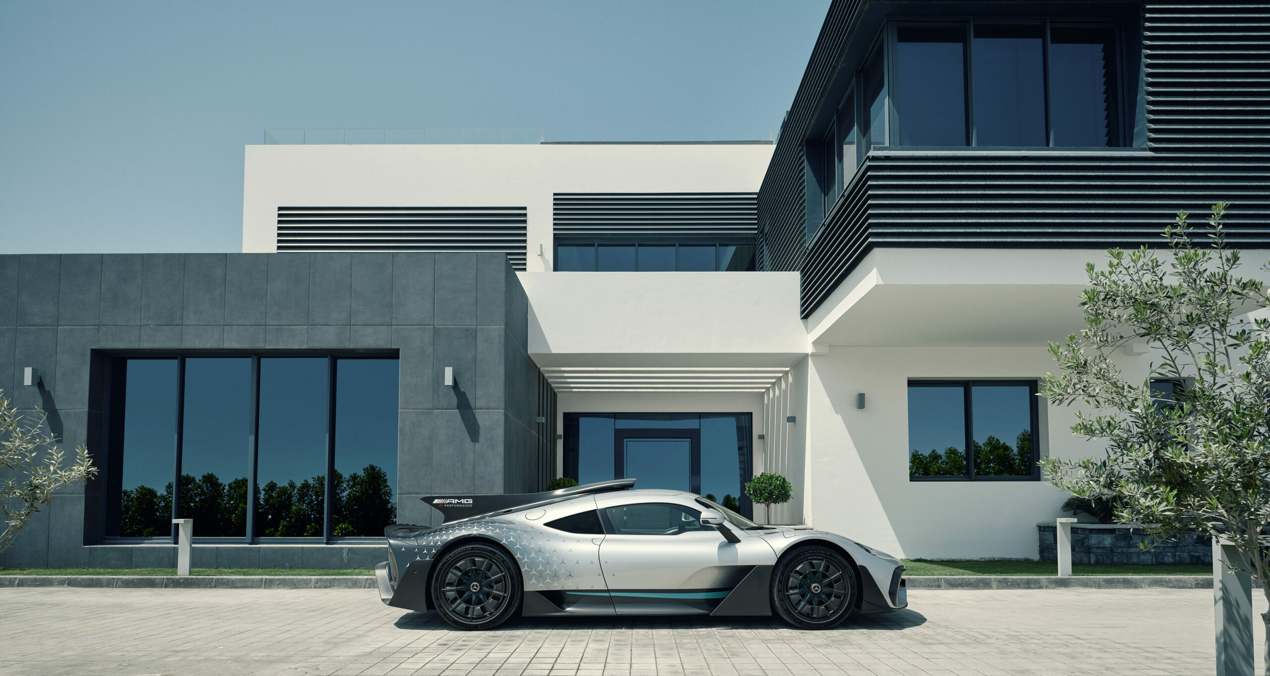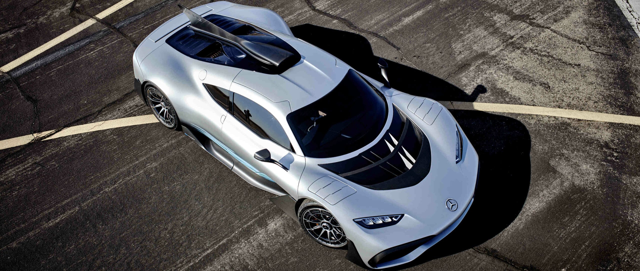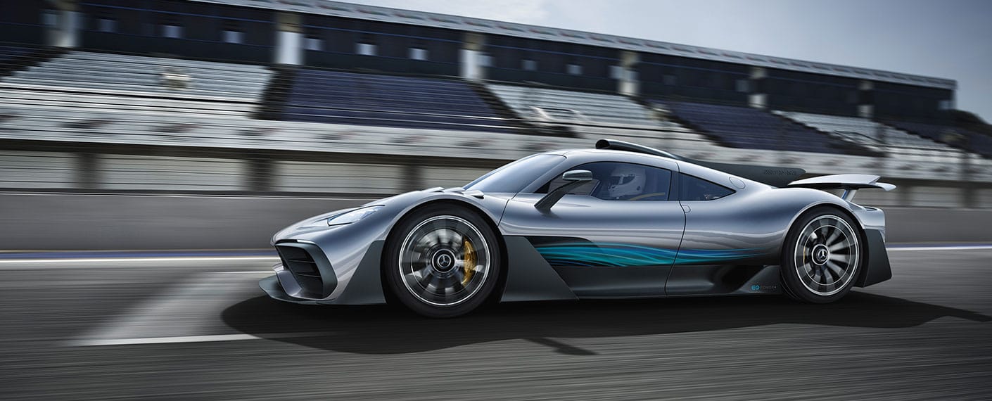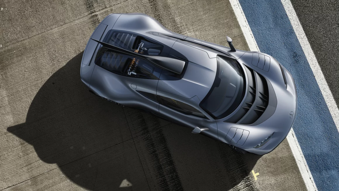 Le moteur V6 essence hybride de 1.600cc avec injection directe et suralimentation par turbocompresseur unique à assistance électrique est directement issu de la Formule 1 Mercedes-AMG Petronas. Pour atteindre un couple élevé, les ressorts de soupapes mécaniques ont été remplacés par des modèles pneumatiques ! Le moteur implanté en position centrale devant l’essieu arrière tourne ainsi à 11.000 tr/min, un régime inédit pour un véhicule routier ne disposant pas de l’assistance “course” et de stands tous les 4 Kms (longueur d’un circuit) pour réparations en ce compris visualisation incessante par satellite, mais qui reste délibérément en-deçà du niveau de F1 pour une longévité accrue et l’utilisation de sans plomb 98 au lieu du carburant de course (gag !) ?…