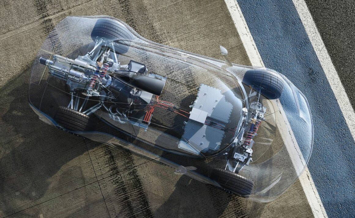 L’intrépide conducteur peut ainsi démarrer en mode purement électrique, l’hypercar étant alors uniquement entraînée dans un premier temps par les moteurs électriques situés sur l’essieu avant et le moteur électrique sur le vilebrequin soutenant ponctuellement l’accélération. Si le conducteur de plus en plus intrépide appuie plus fort sur la pédale et sollicite plus de puissance, le moteur V6 s’enclenche lui aussi en complément. La chaîne cinématique libère alors toute sa puissance à mesure que le régime augmente. Avec la fonction “Race Start”, des accélérations impressionnantes sont possibles : le sprint de 0 à 200 km/h est réalisé en moins de six secondes.