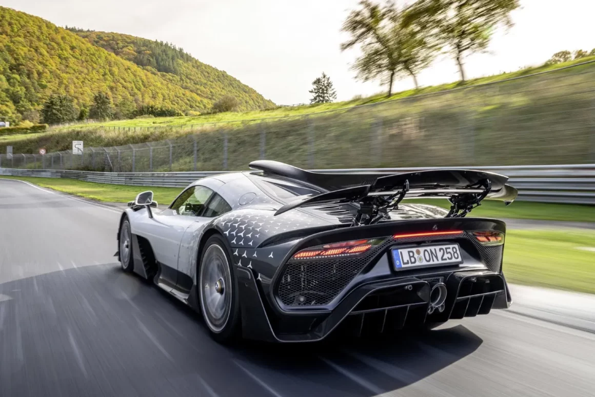 Les 275 exemplaires (série limitée) de la Mercedes-AMG One sont tous déjà vendus depuis deux mois, la fabrication se termine et, au fur et à mesure, elles sont livrées aux acquéreurs enthousiastes et très fortunés (plus de 3 millions d’euros pièce, plus taxes, frais, entretiens, réparations, emmerdes et fisc), toutes auréolées du titre de véhicule de production (limitée) le plus rapide sur le circuit Nürburgring Nordschleife, le pilote professionnel Maro Engel ayant bouclé au volant de l’Hypercar hybride, un tour de “l’Enfer vert” de 20Km832 en 6 minutes 35 secondes et 183 millièmes. Un chrono reléguant la précédente détentrice de ce record, la Porsche 911 GT2 RS équipée du pack Manthey Racing, à près de huit secondes derrière l’AMG One, la nouvelle reine du Ring.