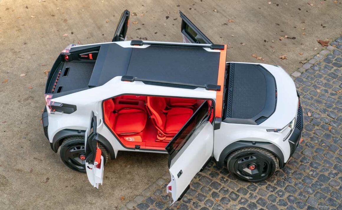 Ouiiiiii ! Avec un design à contre-courant, qui intrigue et séduit, notamment avec son pare-brise vertical, le concept Oli (ou all-ë) se veut surtout un engin essentiel et fonctionnel. Sa carrosserie se compose de matériaux recyclés et recyclables, à la fois robustes et faits pour durer. Oli assure une autonomie de 400 km. Un chiffre rendu possible grâce à un poids plume (1.000 kg), une consommation moyenne réduite de 10 kWh/100 km et une vitesse limitée à 110 km/h. Compatible avec la charge rapide, Oli peut recharger sa batterie de 20 à 80 % en seulement 23 minutes…
