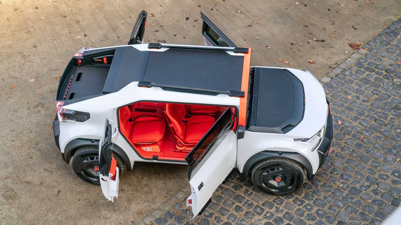 Ouiiiiii ! Avec un design à contre-courant, qui intrigue et séduit, notamment avec son pare-brise vertical, le concept Oli (ou all-ë) se veut surtout un engin essentiel et fonctionnel. Sa carrosserie se compose de matériaux recyclés et recyclables, à la fois robustes et faits pour durer. Oli assure une autonomie de 400 km. Un chiffre rendu possible grâce à un poids plume (1.000 kg), une consommation moyenne réduite de 10 kWh/100 km et une vitesse limitée à 110 km/h. Compatible avec la charge rapide, Oli peut recharger sa batterie de 20 à 80 % en seulement 23 minutes…