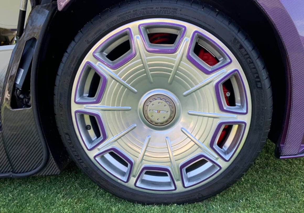 Fux n’avait jamais acheté de voiture électrique auparavant, mais il était intrigué par l’opportunité d’acheter la première des cinq modèles Hispano-Suiza Carmen Boulogne. Fux a donc demandé à Tony Kanaan (le champion des 500 milles d’Indianapolis 2013 est un de ses amis) de venir avec lui pour en acheter une… La couleur choisie est “Ocean Song Rose”, inspirée de sa fleur préférée envoyée au département de design d’Hispano Suiza afin d’être reproduite…