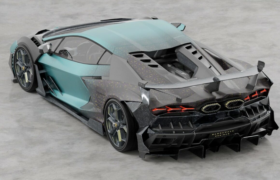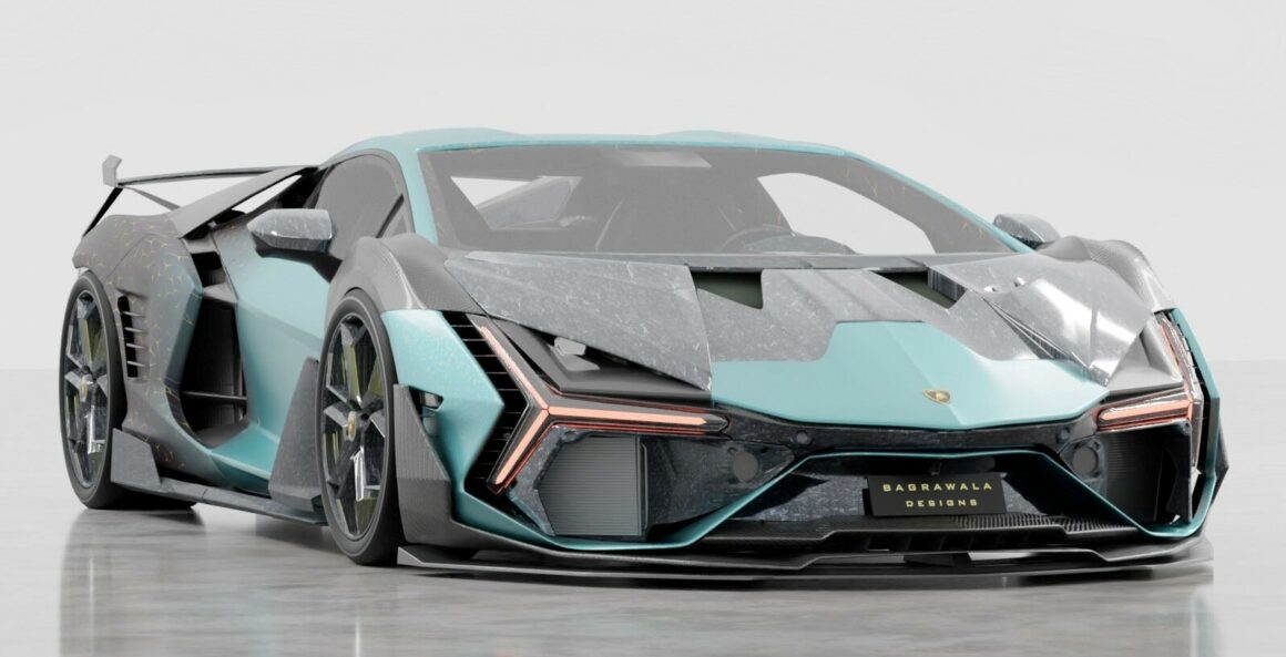 Ils proposent des ensembles aérodynamiques complets de l’avant à l’arrière telle pour une toute nouvelle Lamborghini peu de temps après que la nouvelle voiture soit devenue disponible… Et bien que leur site officiel ait encore une image obscure montrant qu’ils développent activement divers kits, s’est présenté un artiste qui a créé des rendus vraiment intéressants sur la façon dont Mansory pourrait concevoir la nouvelle V12 hybride de Lamborghini nommée avec humour : la Lamborghini Bagrawala… Ca sonne Africain plutôt qu’italien Bagrawala…. Pfffff !!! Cela montre beaucoup de fibre de carbone sur les parties extérieures de cette interprétation d’une Mansory Revuelto…