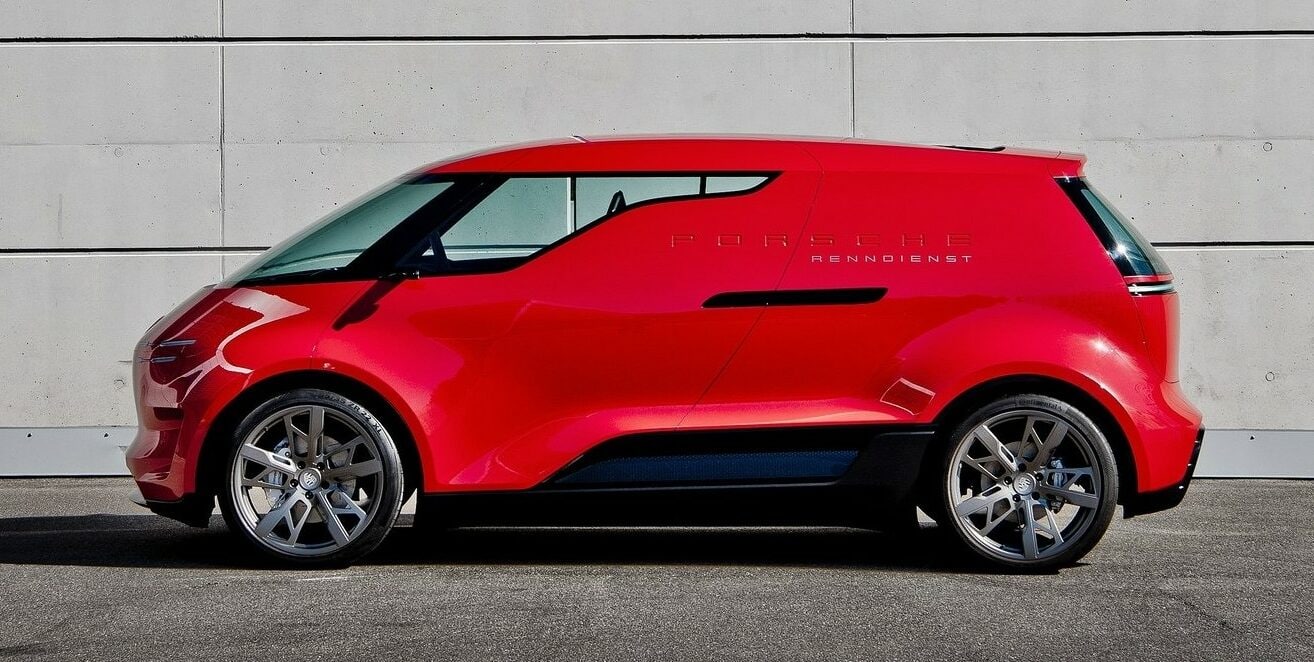 Le voyage réalisé d’une manière totalement nouvelle, alors que le véhicule reste immédiatement reconnaissable comme étant une Porsche. Grâce à sa carrosserie aux passages de roues évasés et au design asymétrique de ses vitres, ce concept restait toutefois inclassable. À l’intérieur, les passagers trouvaient un habitacle extrêmement confortable et modulable. Le conducteur de la Porsche Vision Renndienst était assis dans un fauteuil central, un emplacement offrant une expérience de conduite sportive inédite, alors que l’architecture à bord donnait aux passagers une vue dégagée sur l’avant. La chaîne de traction 100% électrique était située dans le soubassement pour gagner de l’espace.
