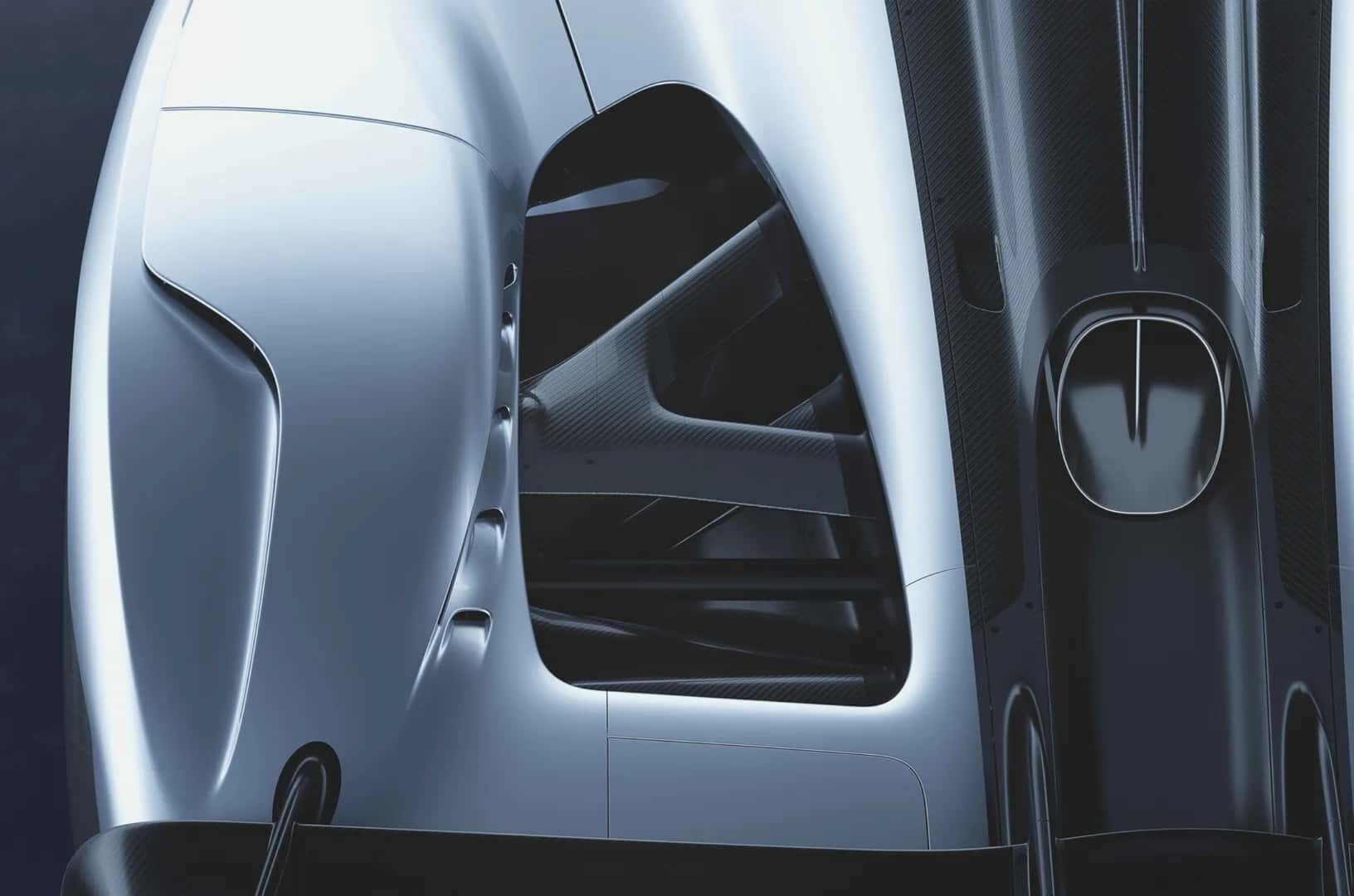 Le long des profils “gauches et droits” (en double sens avec les “S”), qui paraissent identiques (gag !), il faut se forcer à voir des sortes de canaux d’air, sculptés en profondeur (sic !), traversant la carrosserie en carbone (re-sic!) et sensés diriger l’air (toujours invisible) généré par la vitesse (fulgurante, ça va s’en dire) vers des zones dites de refroidissement arrière massives (sic ! resic !! et reresic!!!)… C’est de la fumisterie…