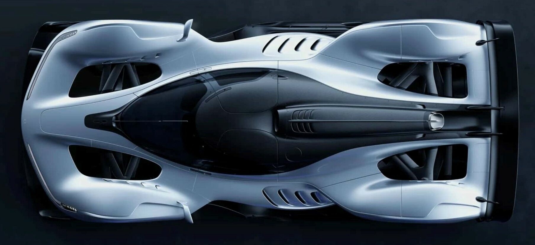 Le long des profils “gauches et droits” (en double sens avec les “S”), qui paraissent identiques (gag !), il faut se forcer à voir des sortes de canaux d’air, sculptés en profondeur (sic !), traversant la carrosserie en carbone (re-sic!) et sensés diriger l’air (toujours invisible) généré par la vitesse (fulgurante, ça va s’en dire) vers des zones dites de refroidissement arrière massives (sic ! resic !! et reresic!!!)… C’est de la fumisterie…