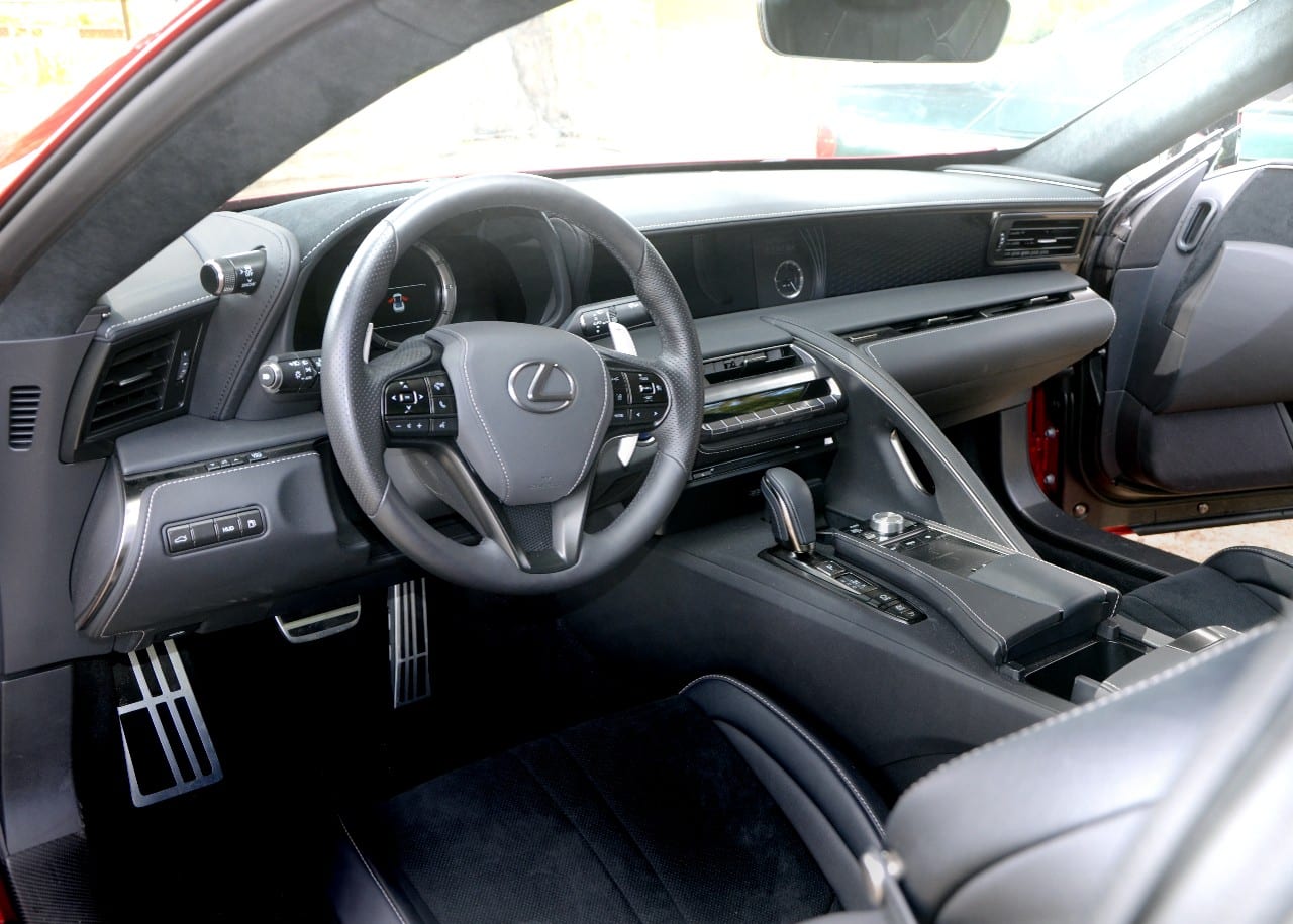 Comme toujours chez Lexus, la finition de l’habitacle se veut exemplaire, l’équipement très complet, archi-complet, même, ce mélange de cuir et d’alcantara en dit long sur le degré de sophistication, tout comme d’ailleurs l’excellente installation audio signée Mark Levinson, une véritable salle de concert (j’ai apprécié)… et du côté de l’inventaire, on y trouve à peu près tout ce qui se fait de mieux en automobile de haut de gamme, avec de très nombreuses aides à la conduite.