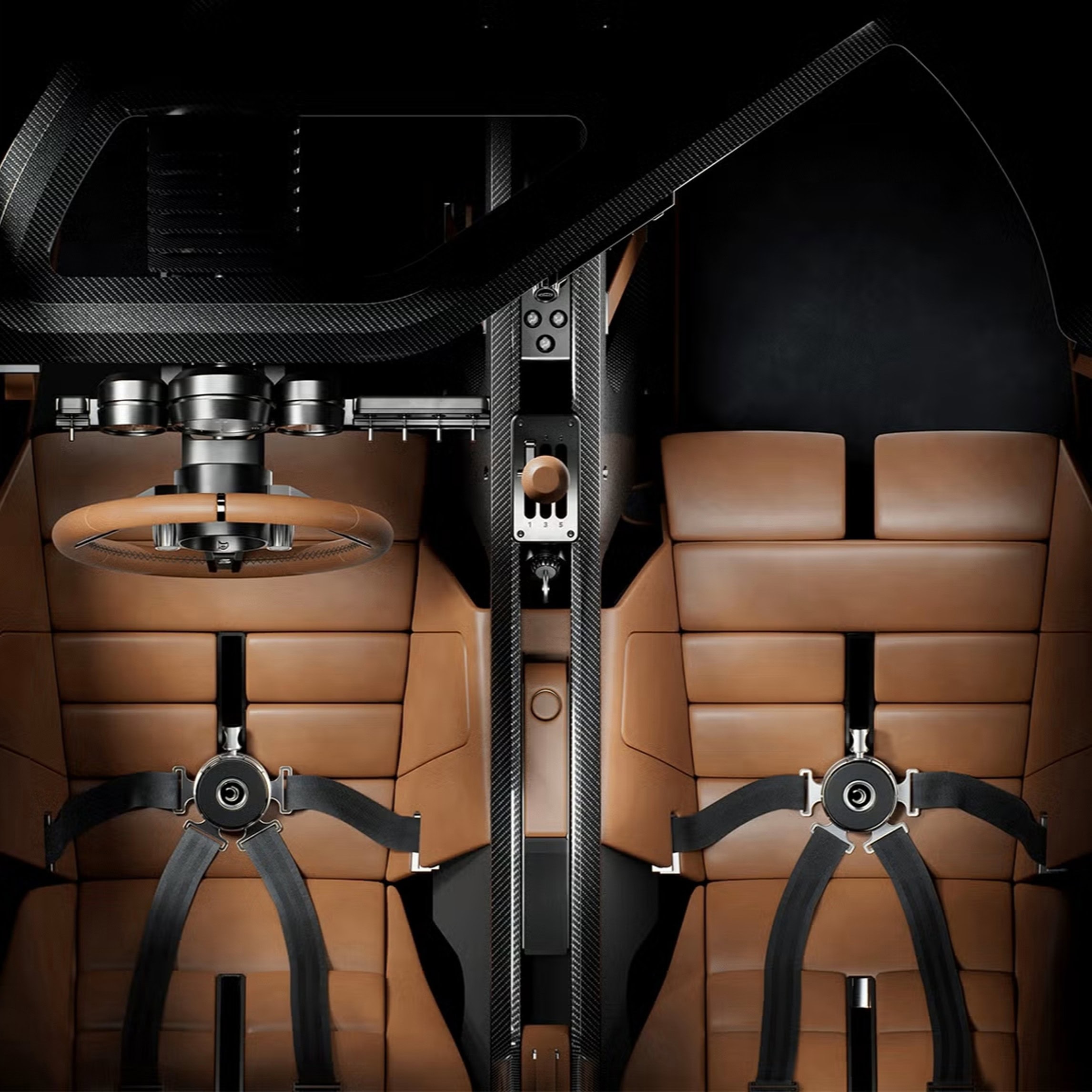 Bien que la fibre de carbone domine l’habitacle et qu’elle ne soit pas équipée d’un système audio, la Capricorn 01 Zagato présente des commandes et des éléments intérieurs usinés dans du titane et de l’aluminium massifs, du cuir Connolly sur les sièges et de l’Alcantara sur d’autres surfaces. Le tableau de bord épuré comprend un combiné d’instruments analogique avec un grand compte-tours central, un compteur de vitesse à gauche et un bloc d’instruments à droite regroupant les jauges de carburant, de température d’huile et de pression d’huile. Le volant à trois branches, a été conçu par Capricorn…