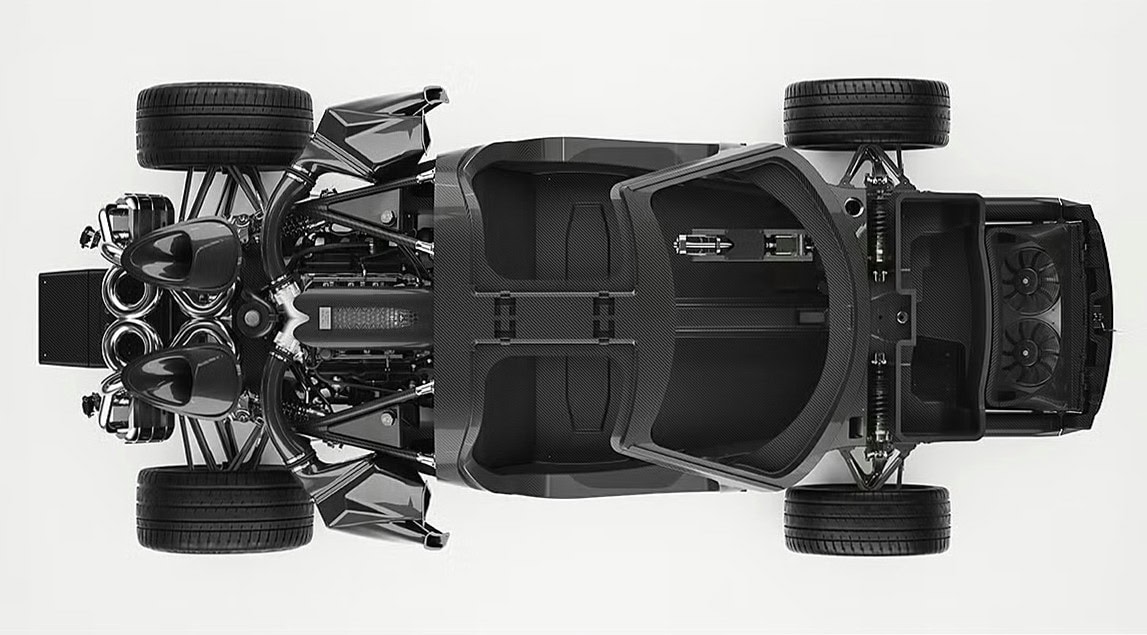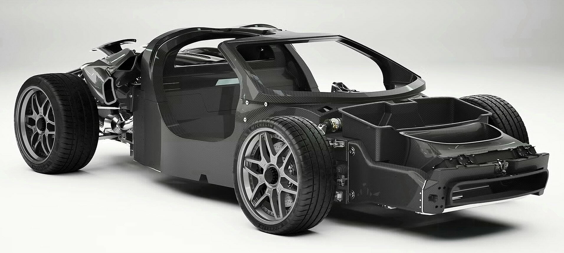 La première voiture à moteur central entièrement sur mesure de Zagato, conçue sous la direction du designer en chef Norihiko Harada, s’auto-présente comme “simplement époustouflante car représentant la plus belle réalisation de la marque depuis sa création”… Diantre ! Quelle pompe ! Mais ce qui se cache sous cette carrosserie en fibre de carbone est présenté comme étant encore plus impressionnant. C’est un châssis en fibre de carbone de type LMP conçu pour spécifiquement pour la Capricorn 01 Zagato.. Et, ce n’est pas seulement la monocoque centrale qui est fabriquée dans ce matériau ultraléger et ultra-rigide !