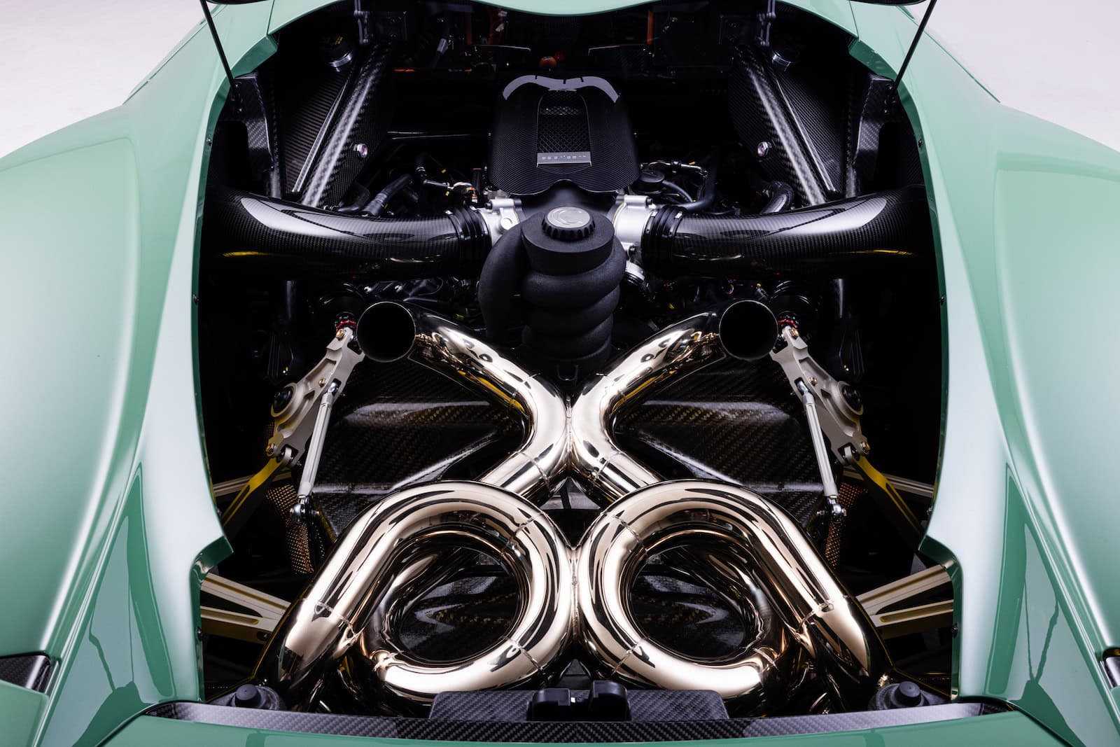 Arghhhhh ! Quoi donc ? Des disques Brembo en carbone-céramique, pincés par des étriers à six pistons, le tout se dissimulant derrière des jantes de 21po en aluminium forgé ou en fibre de carbone, conçues et fabriquées en interne par Capricorn… Niché entre les roues arrière et le tablier derrière l’habitacle se cache… un V8 Ford. Certes, les V8 Ford ont propulsé plusieurs sportives à moteur central au fil des ans, de la GT de Ford aux De Tomaso Mangusta et Pantera, mais ce choix paraît étonnamment banal compte tenu de l’équipement prétendu ultra-spécialisé de la Capricorn 01 Zagato.