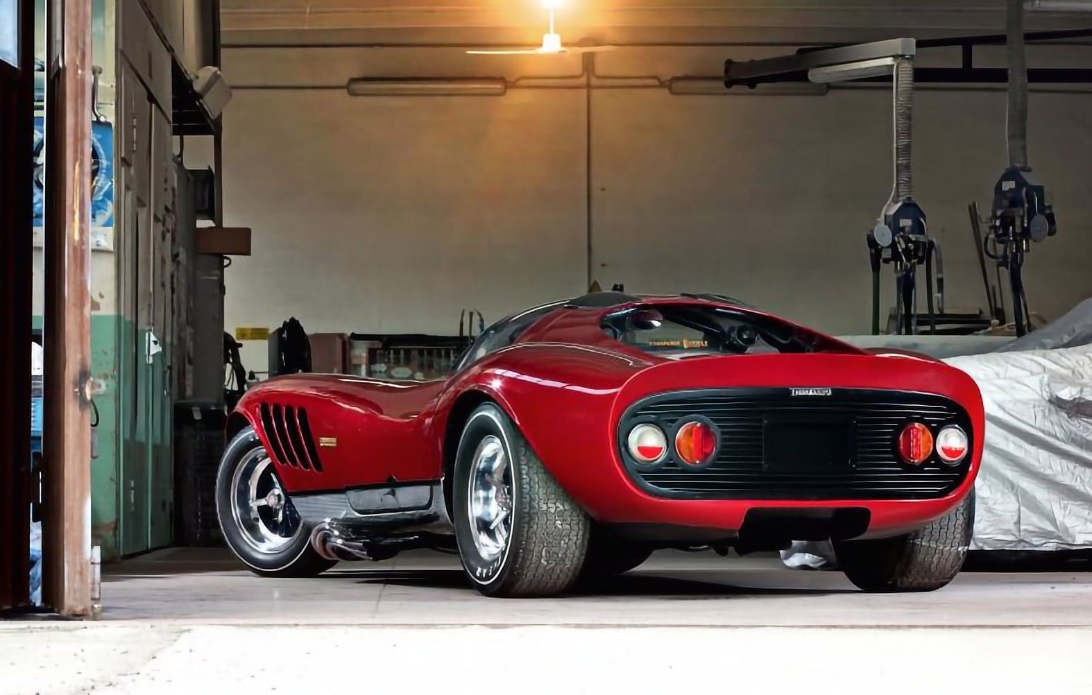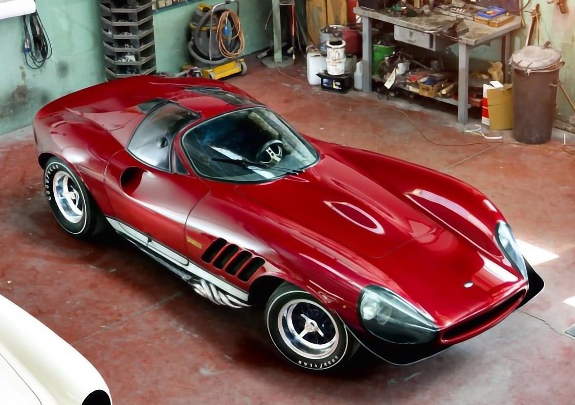 Pas n’importe quel moteur, mais un vrai Duntov-Spécial qui va propulser un des coupés emblématiques créés par Tom Meade qu’il appelait “L’Anti-Cobra”, après qu’un accord verbal avec Carroll Shelby ait été usurpé par Ford… Meade a donc fini de reconstruire la Maserati 350S avec le moteur Chevrolet et il a personnalisé la carrosserie avec un toit rigide amovible. Meade a expédié la voiture à San Francisco en 1962, c’était un chef d’oeuvre qui était issu d’années et d’années d’efforts et souffrances. Meade, fier a prété son bijou a un faux-ul d’ami qui voulait parader pour baiser les filles… Et il l’a pulvérisée dans un canyon de Malibu, détruisant le véhicule. L’épave a été vendue pour une fraction de ce qu’elle aurait pu valoir.