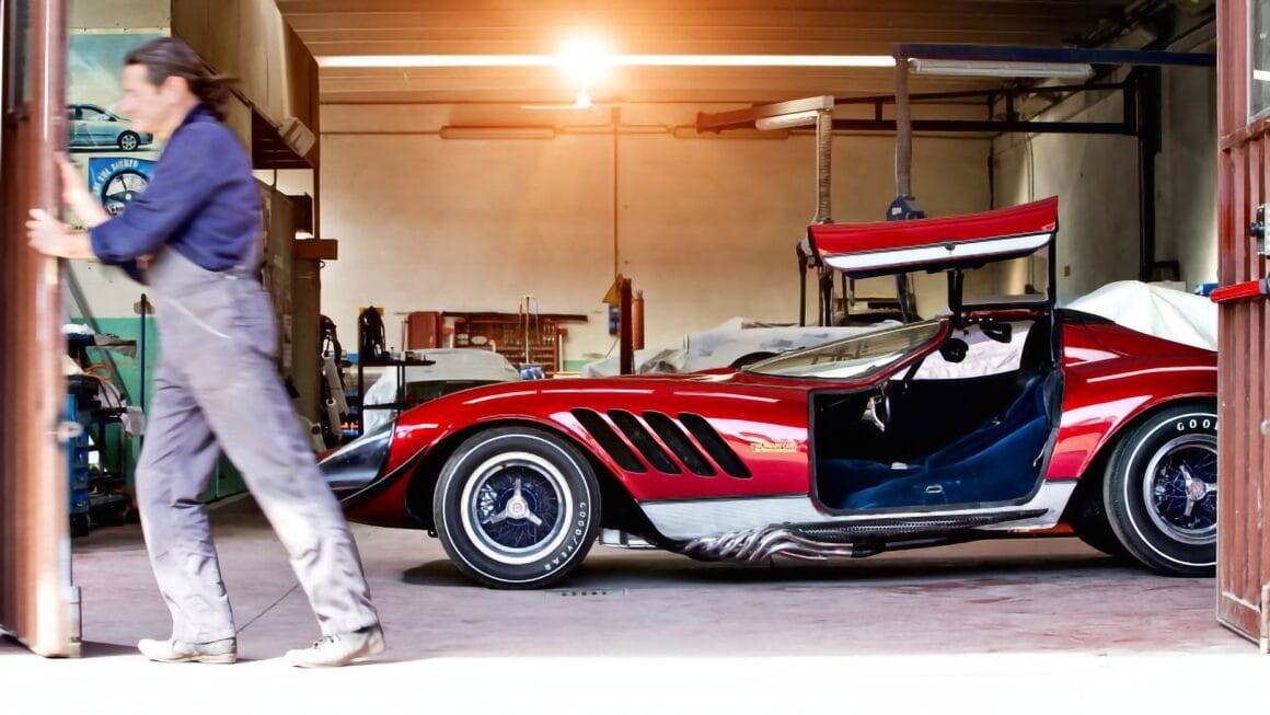 Un vieux débarra voisin de l’usine Maserati devient ensuite l’atelier de restauration de Tom Meade mais aussi sa maison.