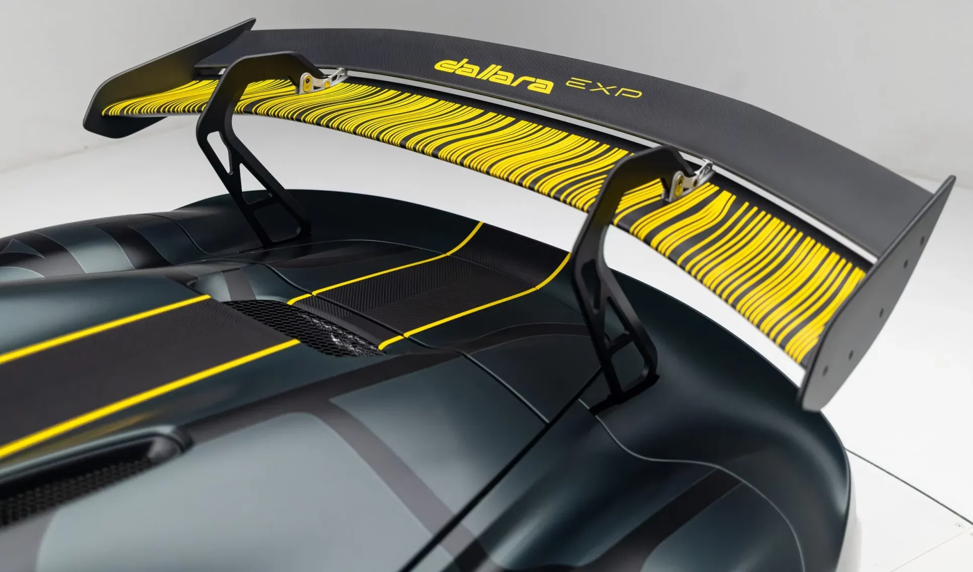 Un affichage numérique de type sport automobile est logé dans un bloc optique en fibre de carbone, et le compteur kilométrique numérique affiche les 123 kilomètres (environ 76 miles) indiqués plus avant ans le texte. À l’instar de la Stradale, la Dallara EXP est propulsée par un moteur EcoBoost quatre cylindres en ligne de 2,3 litres, emprunté à la Ford Focus RS et développé en partenariat avec l’équipementier allemand Bosch. Ce moteur est doté d’un turbocompresseur, d’une lubrification par carter sec et d’un volant moteur monomasse.